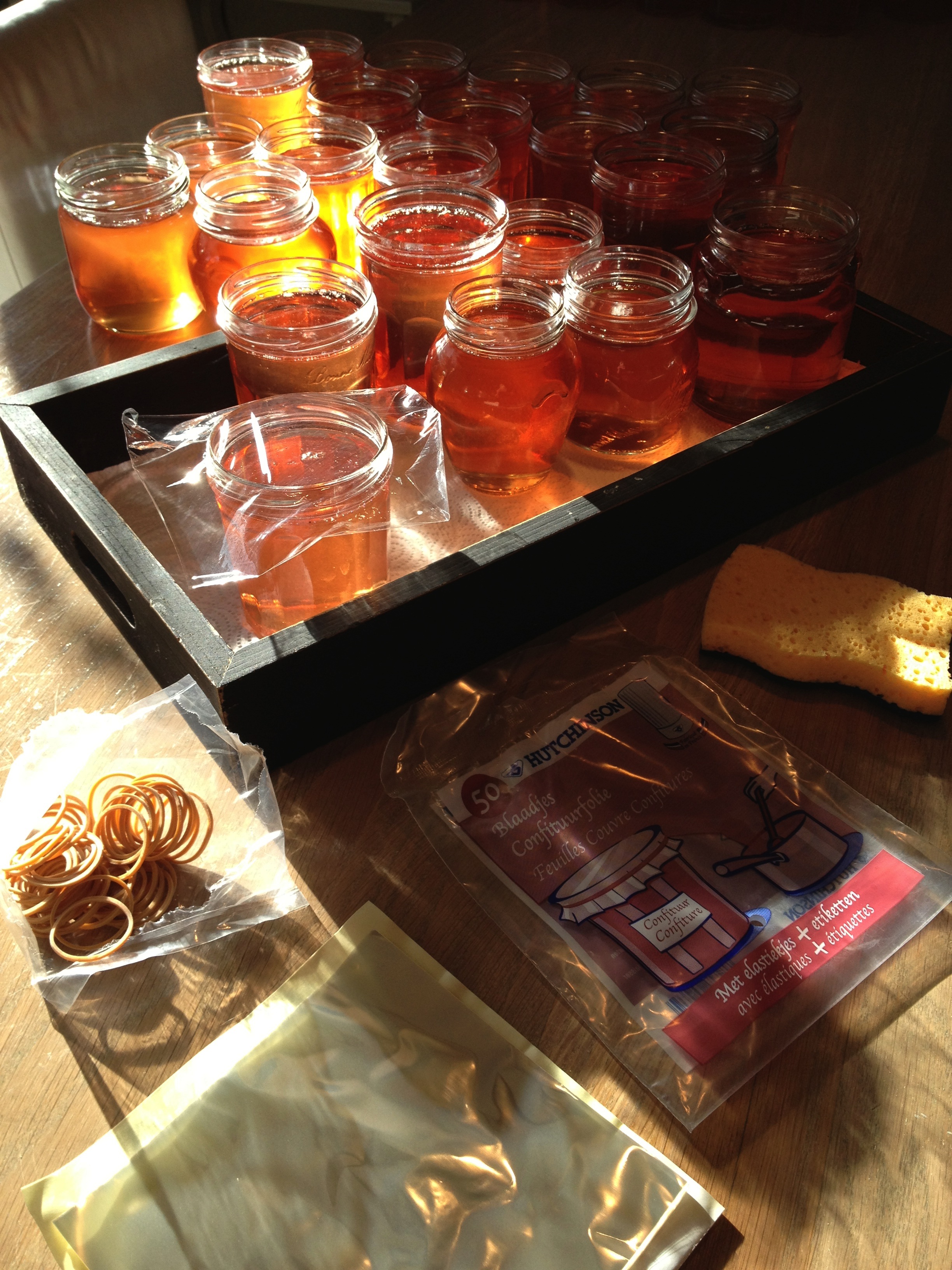 7. vérifier que ce soit bien geléifié (en faisant couler une goutte sur une assiette à la verticale), et mettre dans des pots bien lavés à l’eau bouillante
