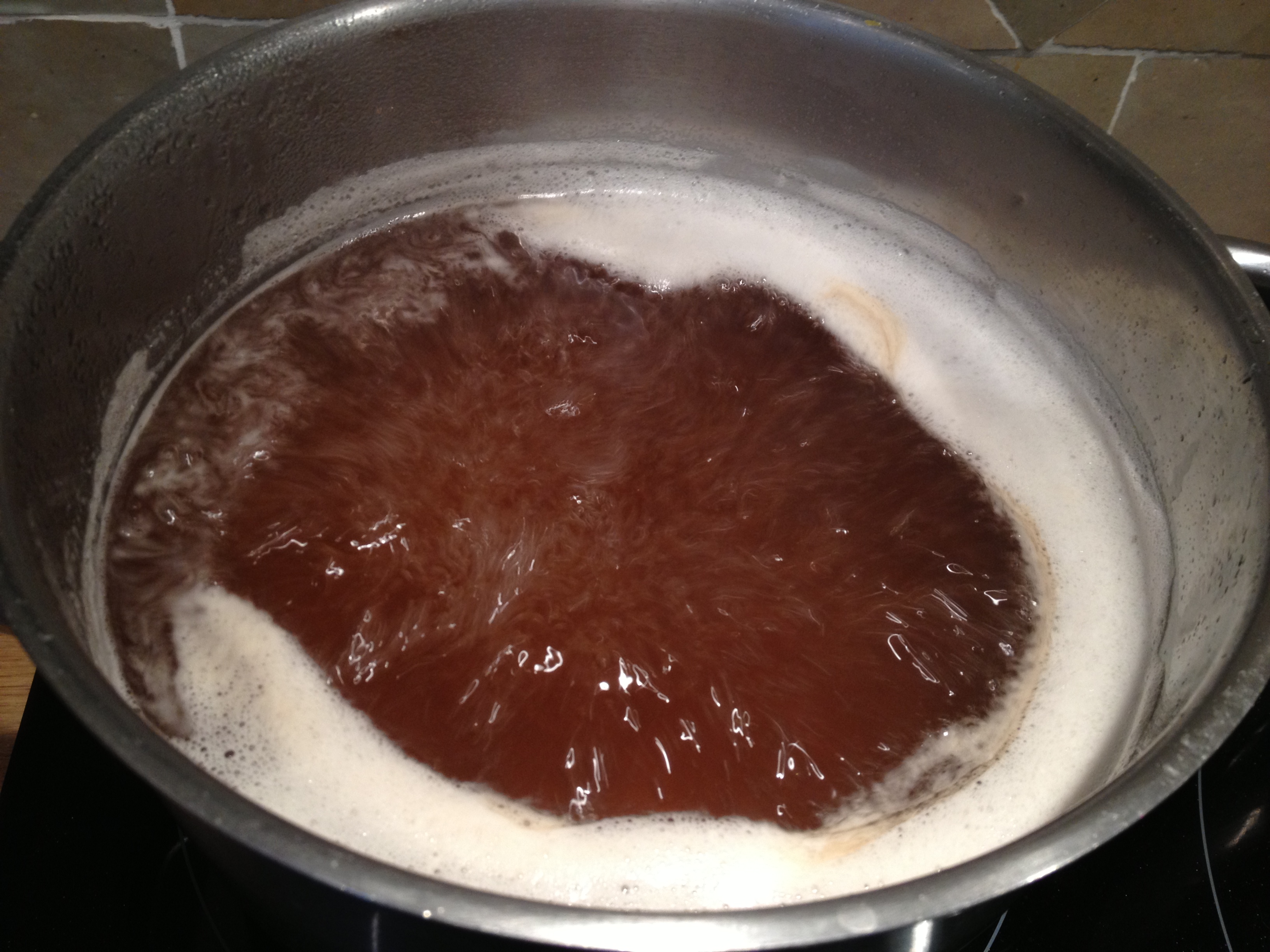 6. faire cuire le jus obtenu, avec du sucre (1 kg pour 1 litre 1/2)