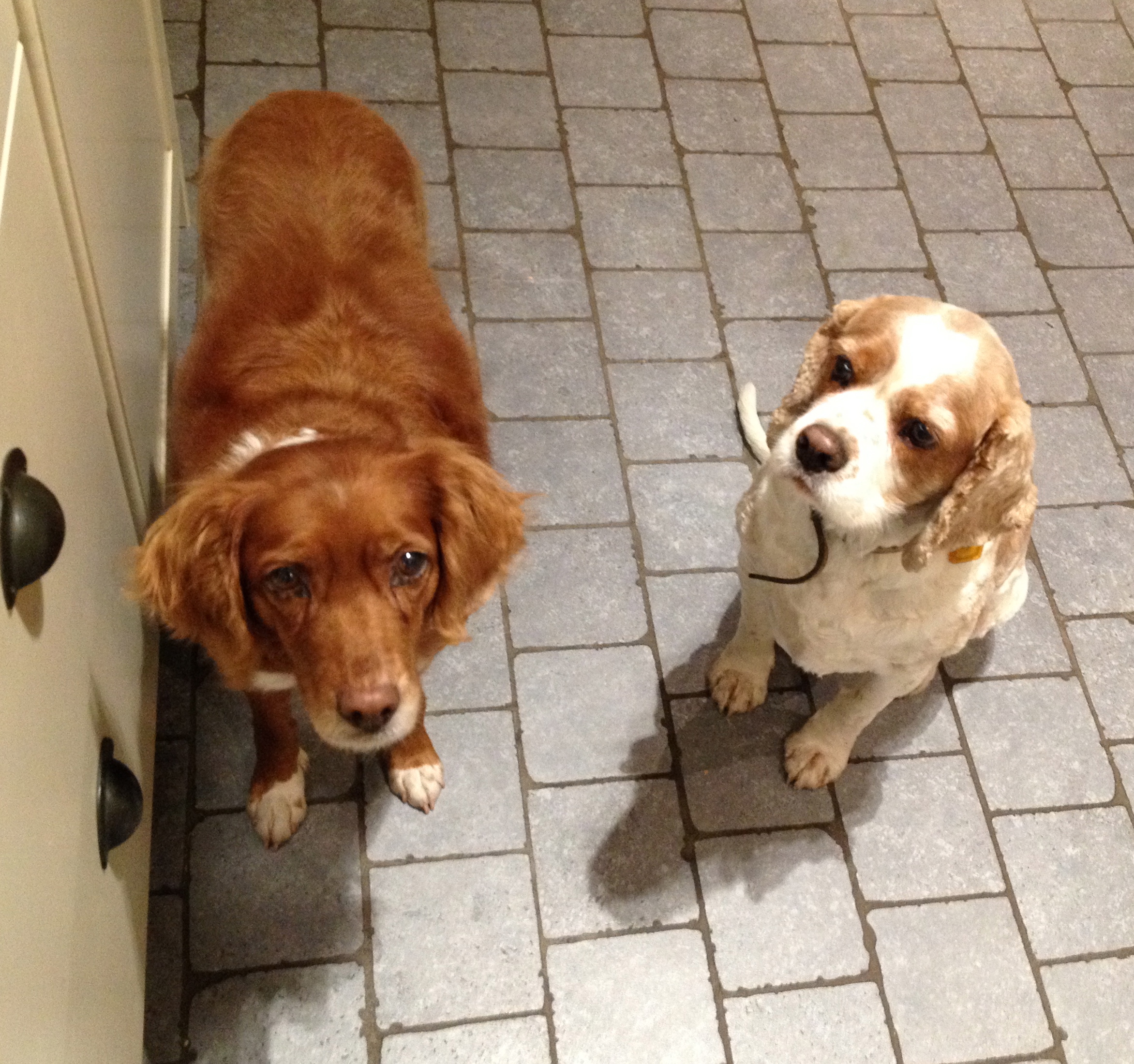 … toujours comme deux ombres dans mon dos, Filou et Laya à l’affut de la moindre miette qui tomberait de mes mains