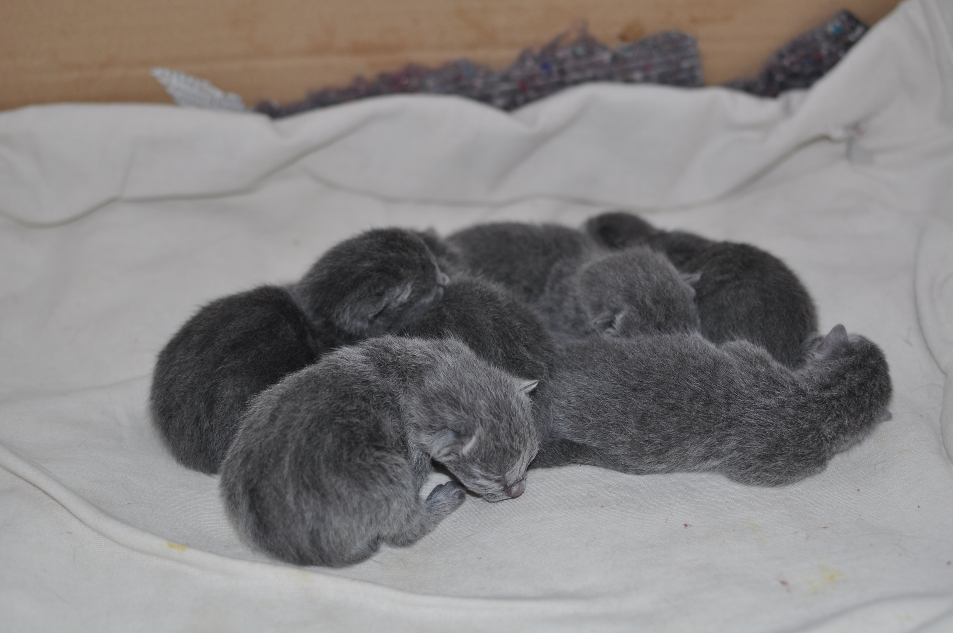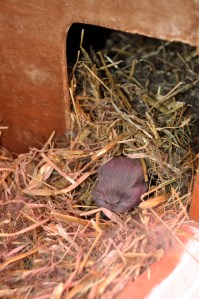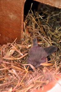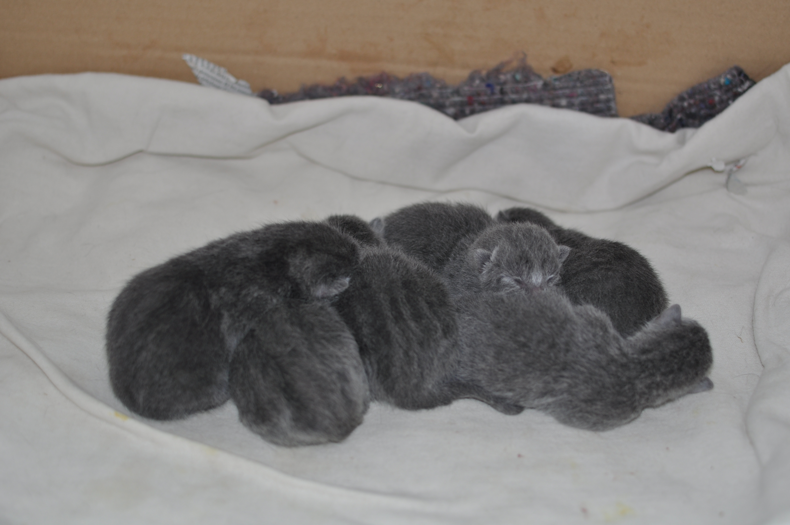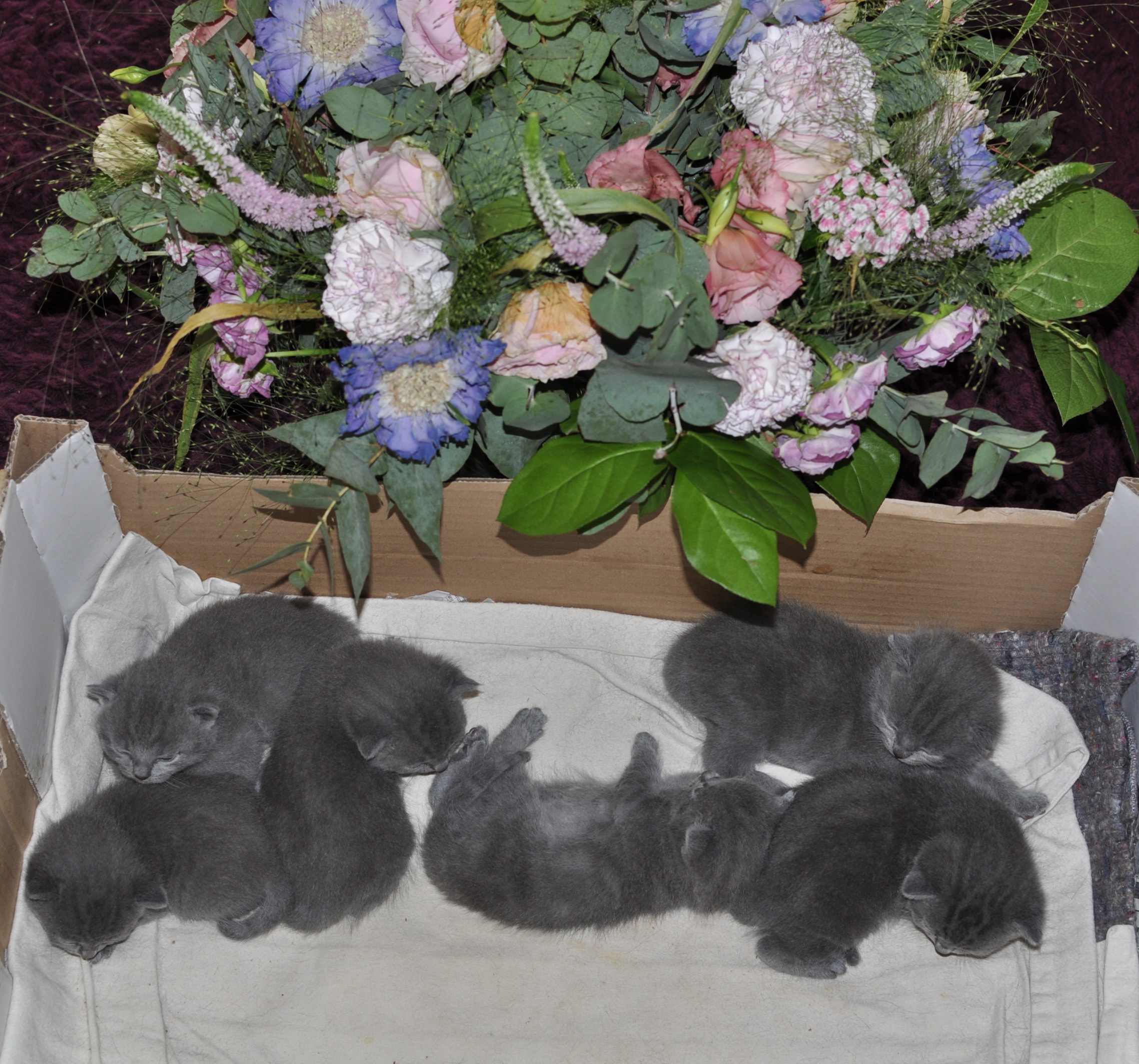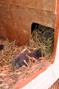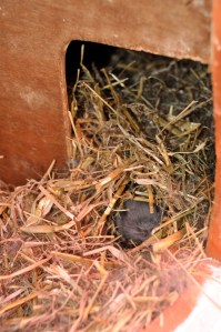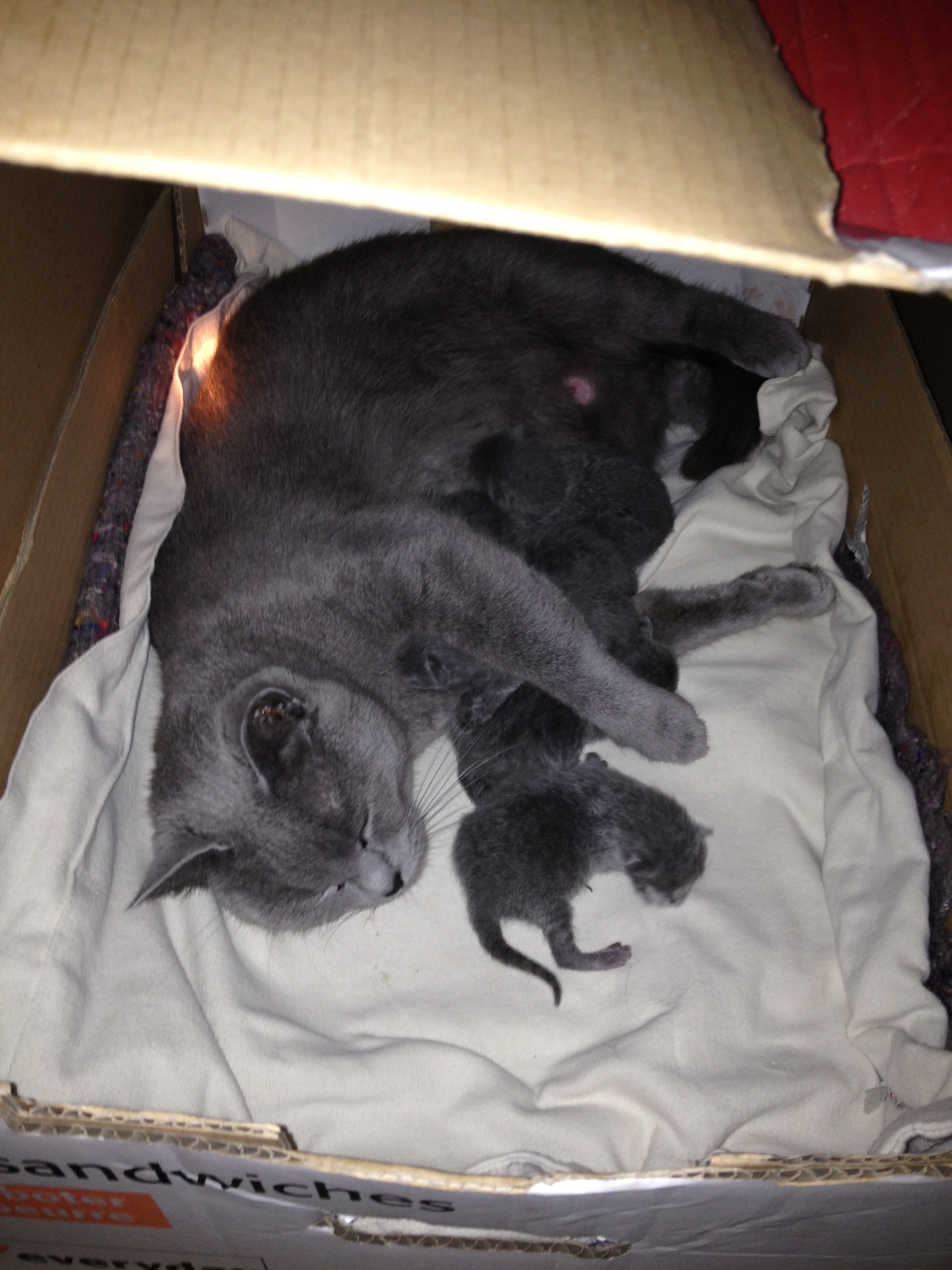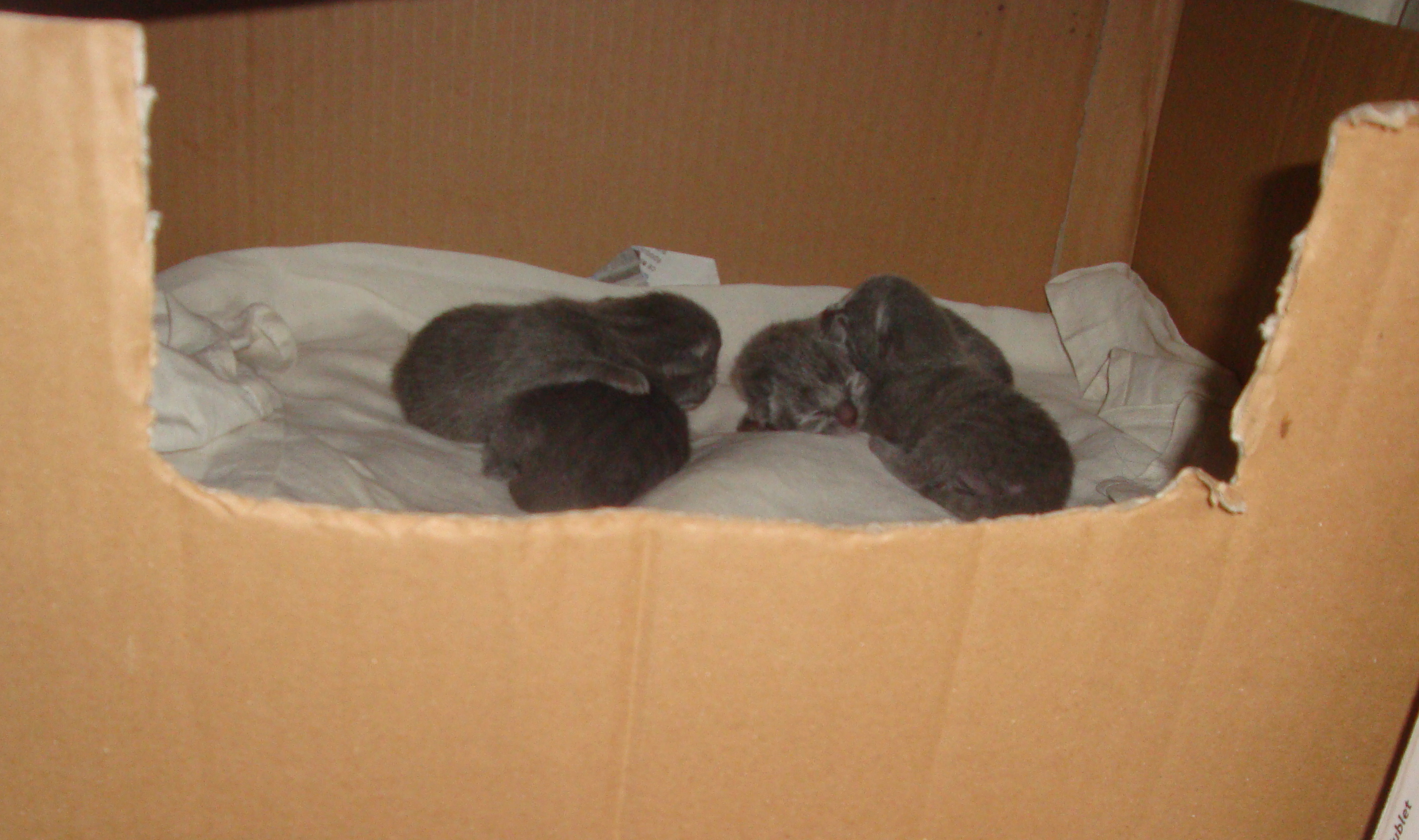 La belle Fanfan, préférant l’isolement, avait trouvé à la cave notre stock de caisses entreposées pour y faire ses petits, plutôt que dans sa chambre de princesse installée pour l’occasion !