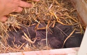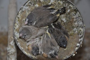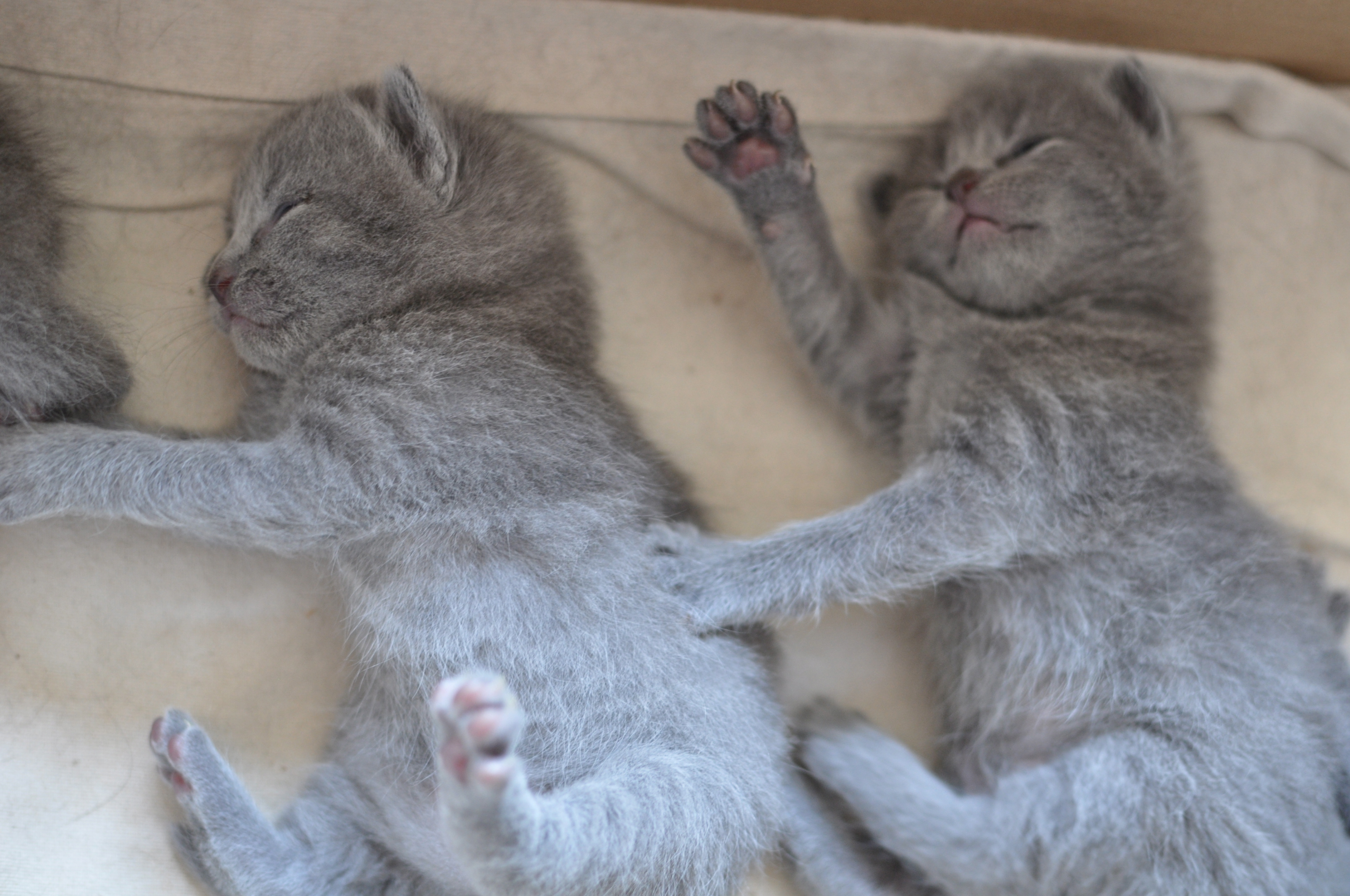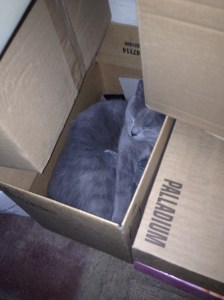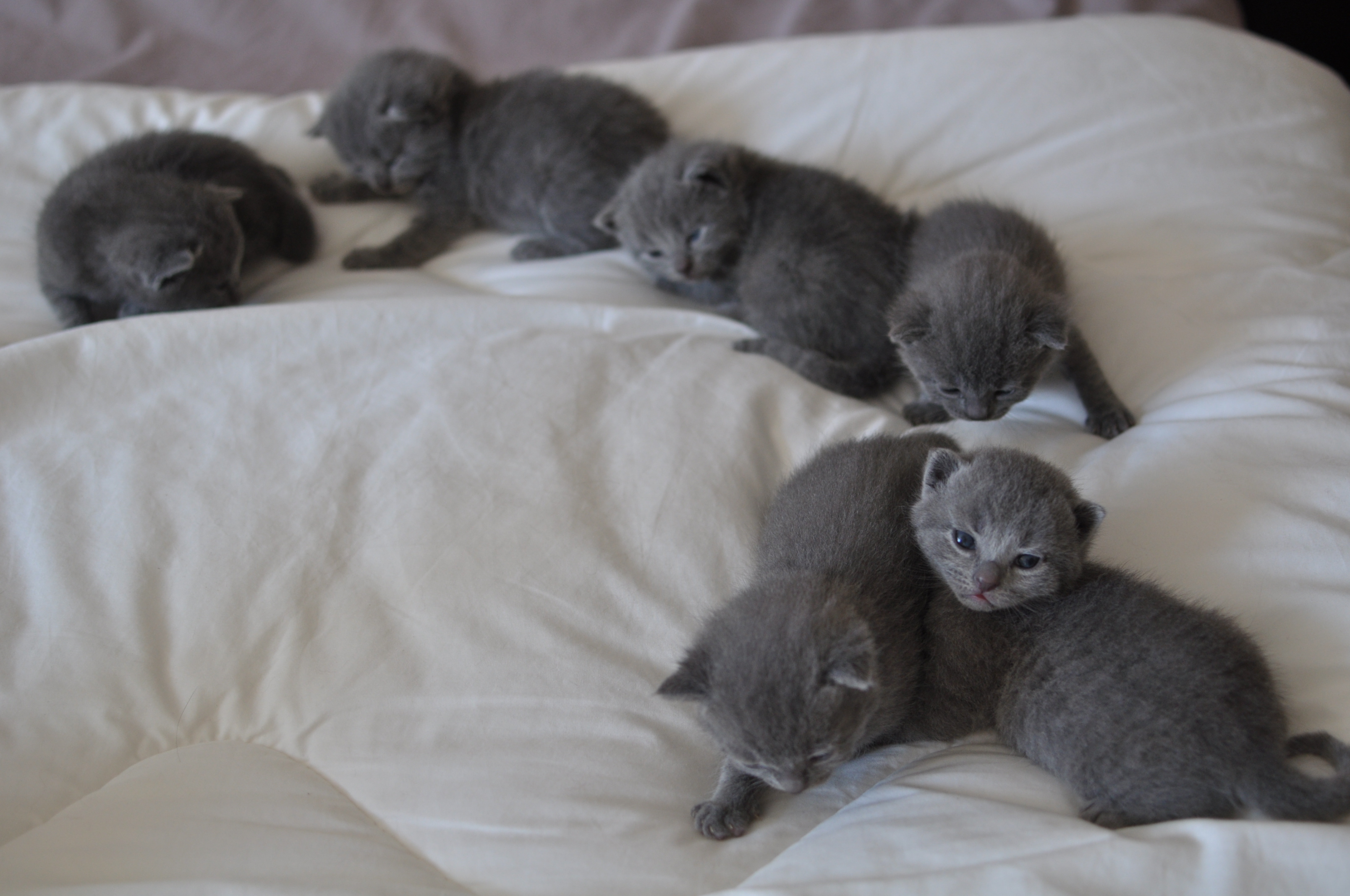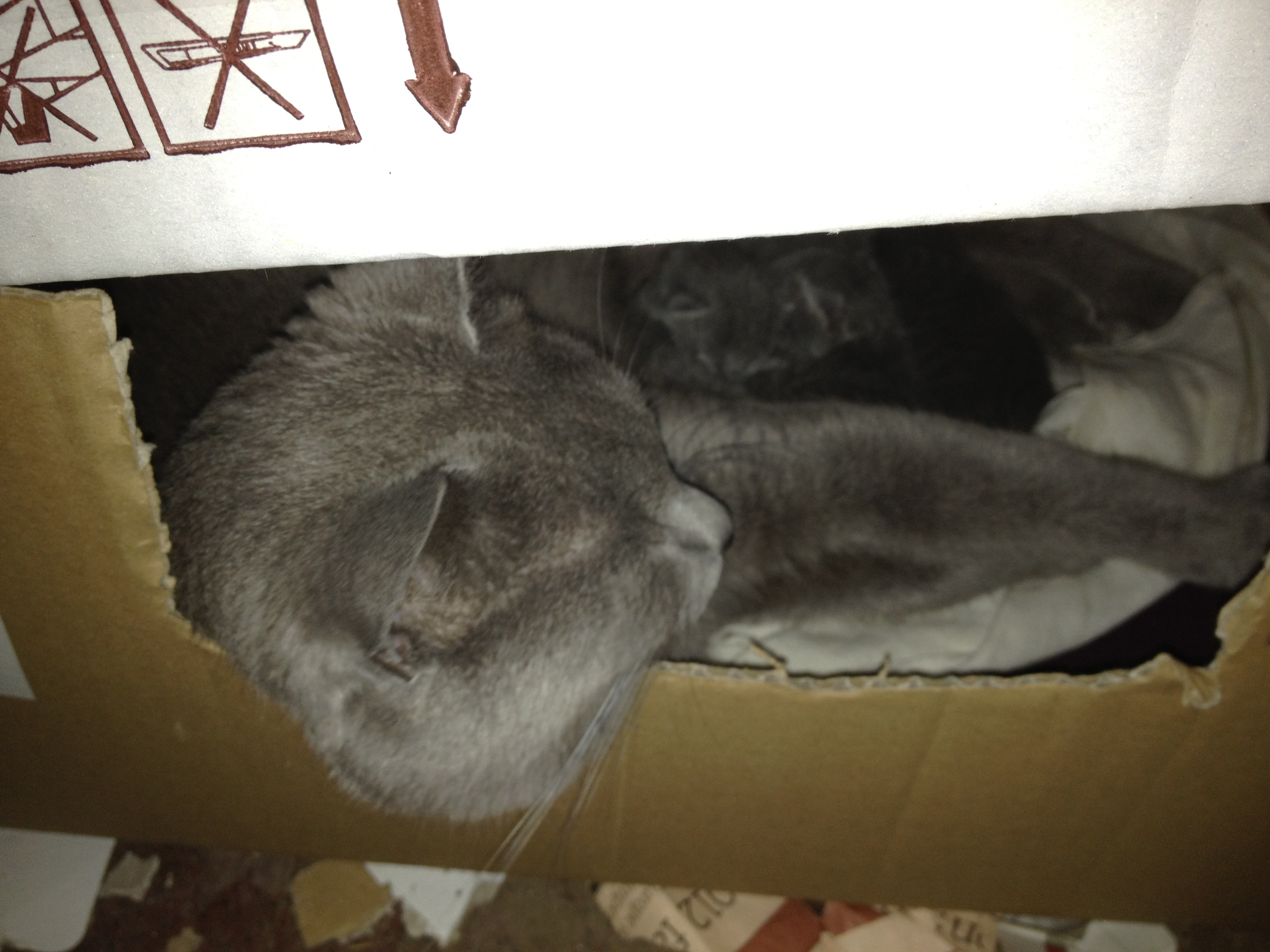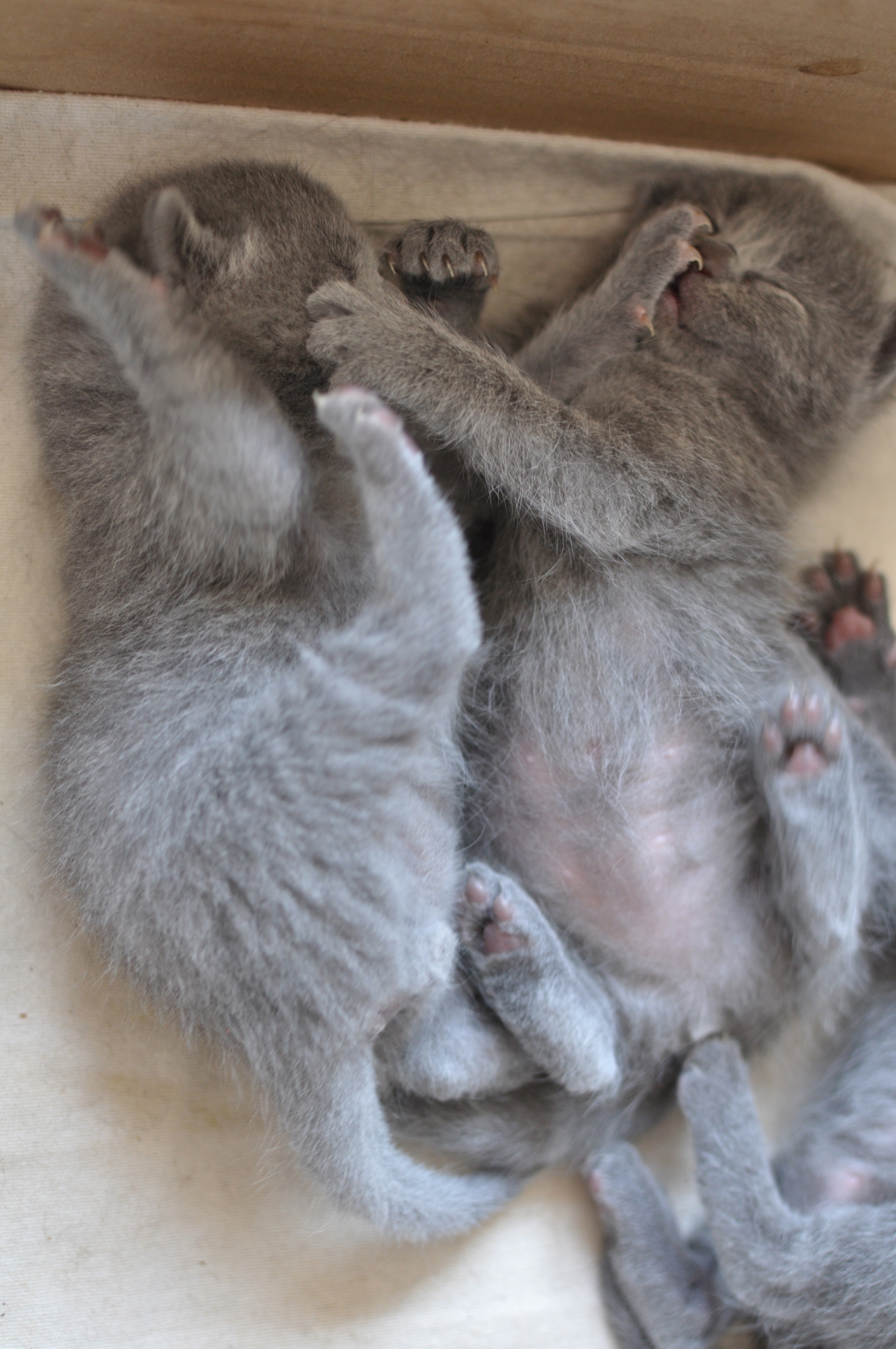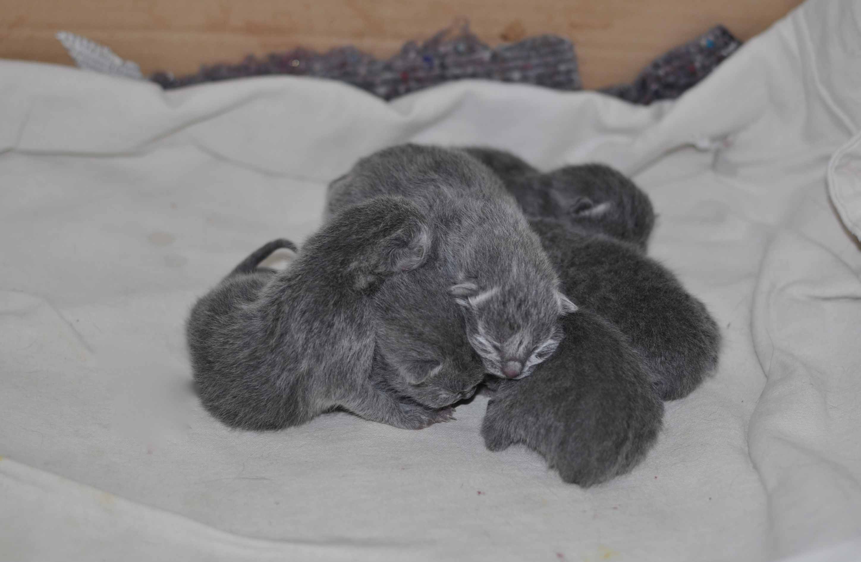 La belle Fanfan, préférant l’isolement, avait trouvé à la cave notre stock de caisses entreposées pour y faire ses petits, plutôt que dans sa chambre de princesse installée pour l’occasion !