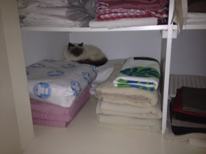 De son côté, notre mâle castré Sacré de Birmanie – Youri- fait le gros jaloux et se montre très intéressé par toutes mes armoires à squatter 😉