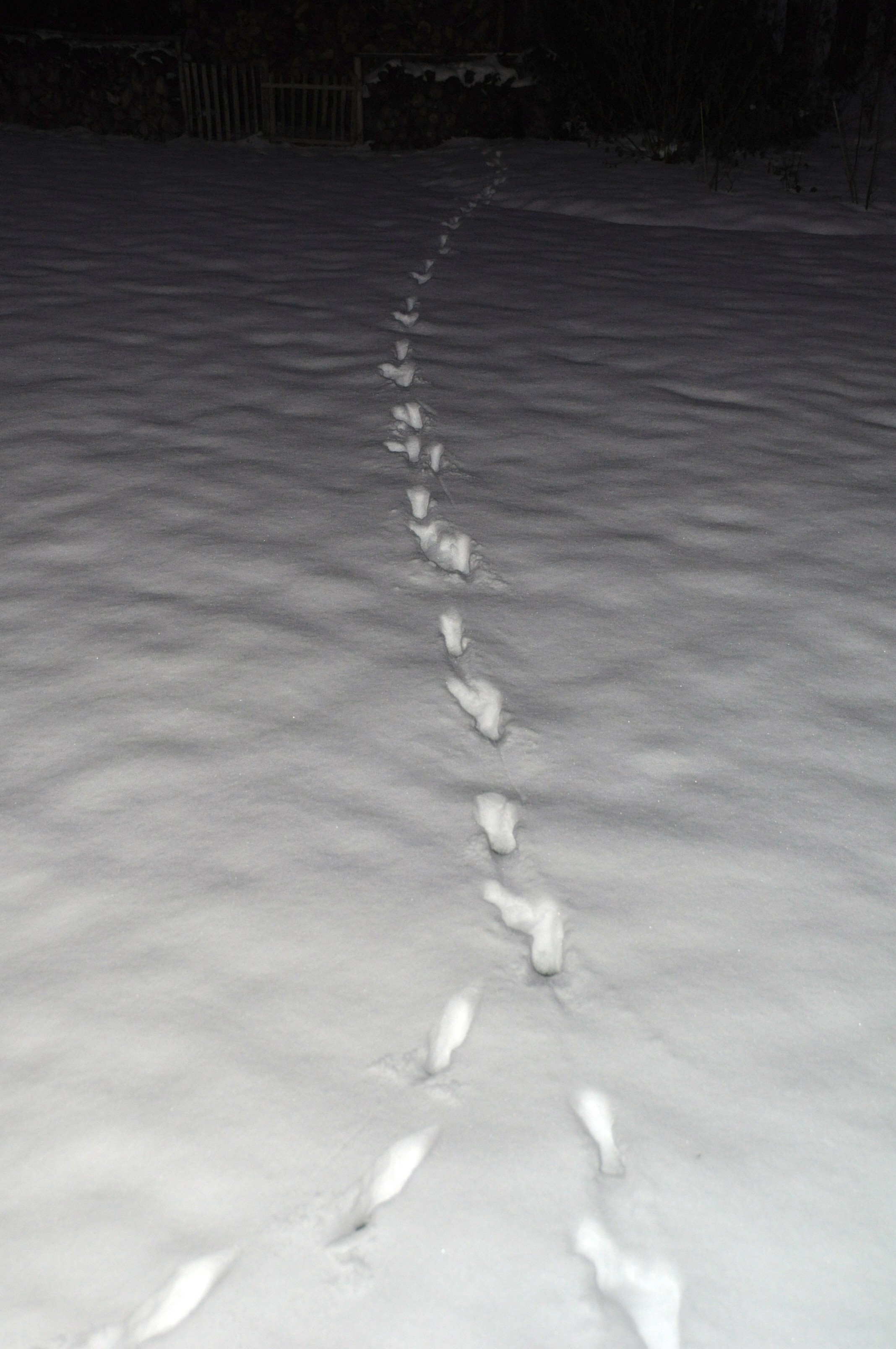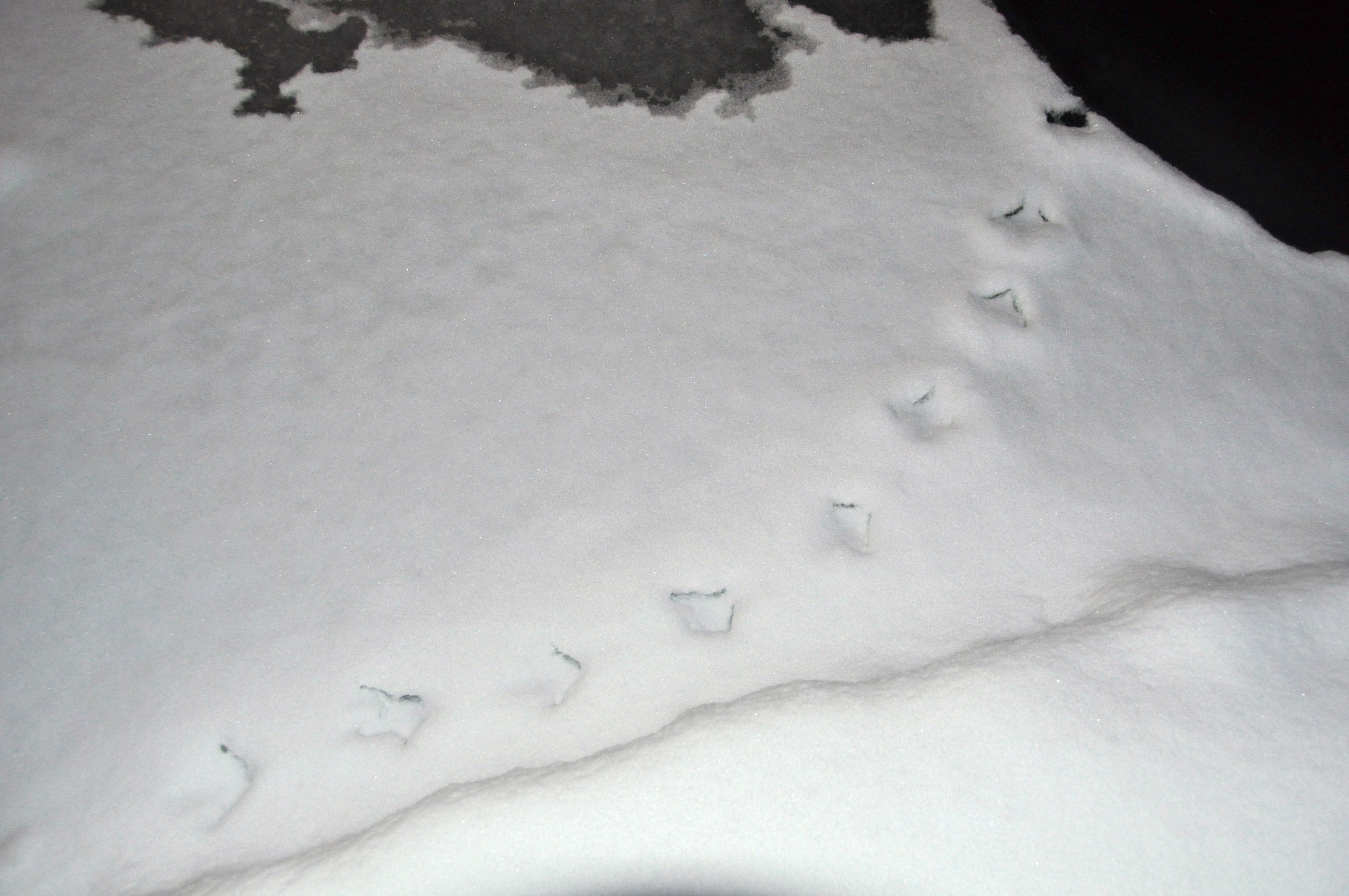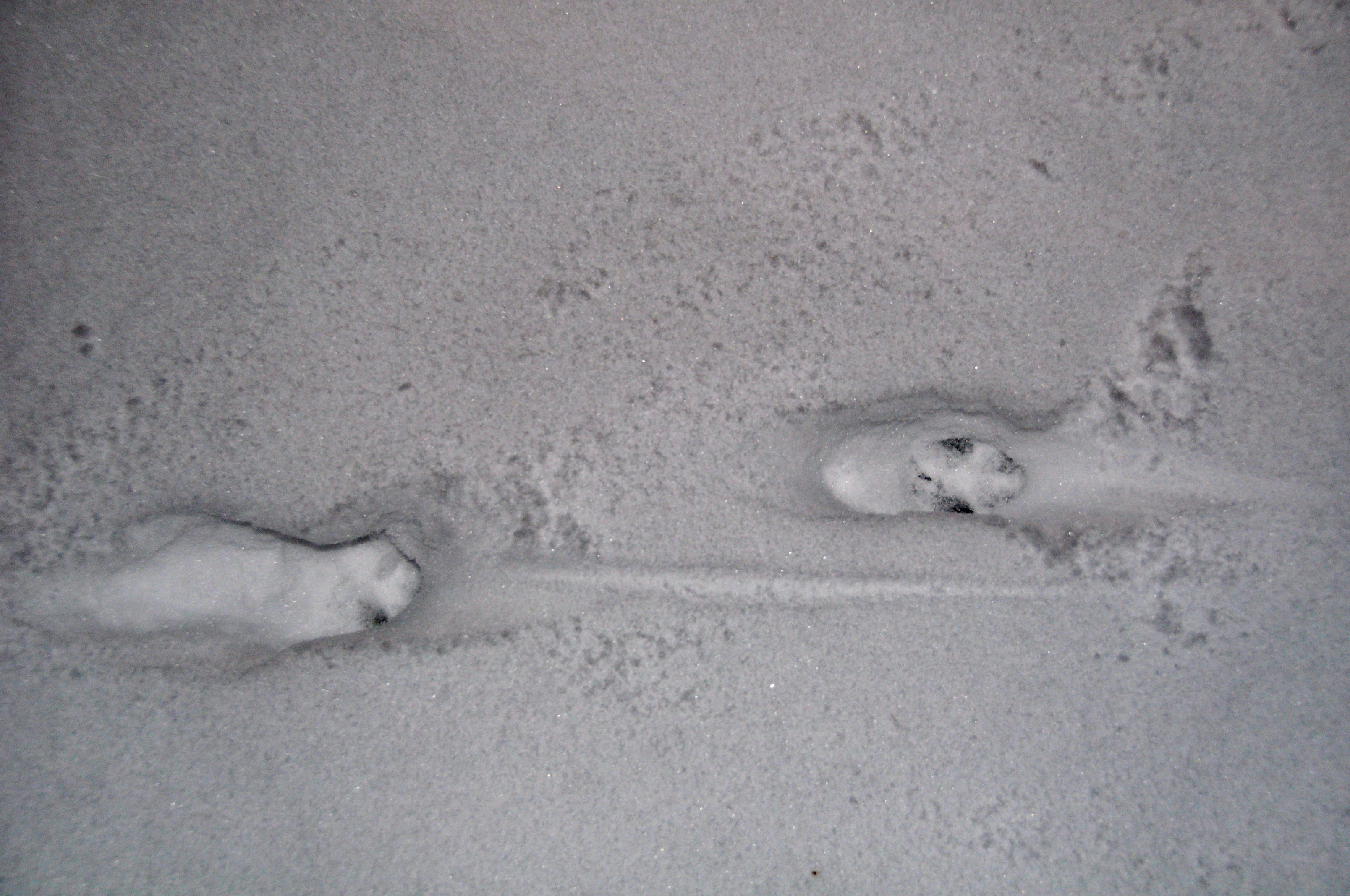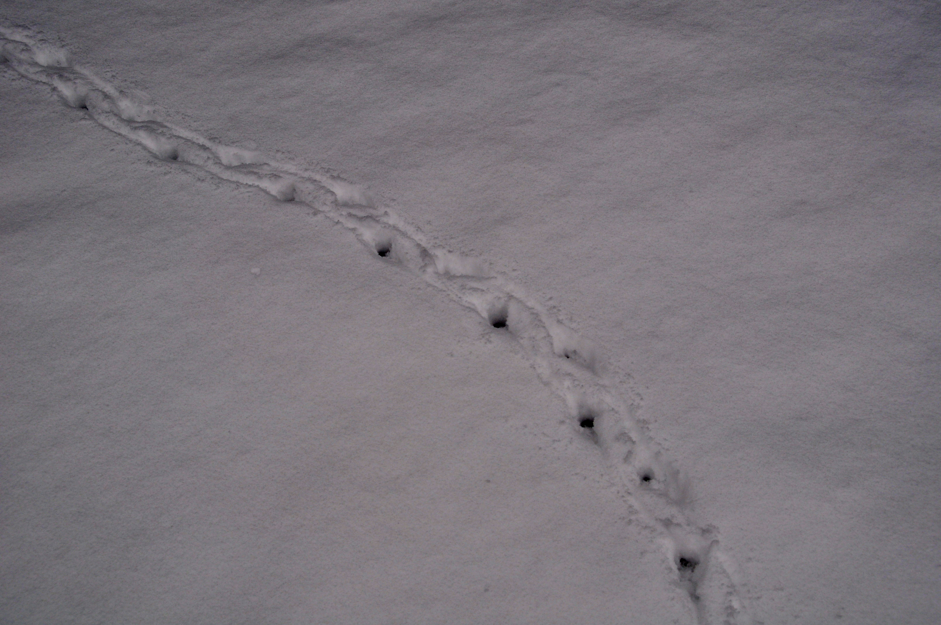 Il y a des traces de renard, de poule d’eau, de rouge-gorge, de chats, de chiens, de héron, … L’un sortant d’une haie, l’autre arrivant sur le marais gelé, … Que de choses se passent ici la nuit !