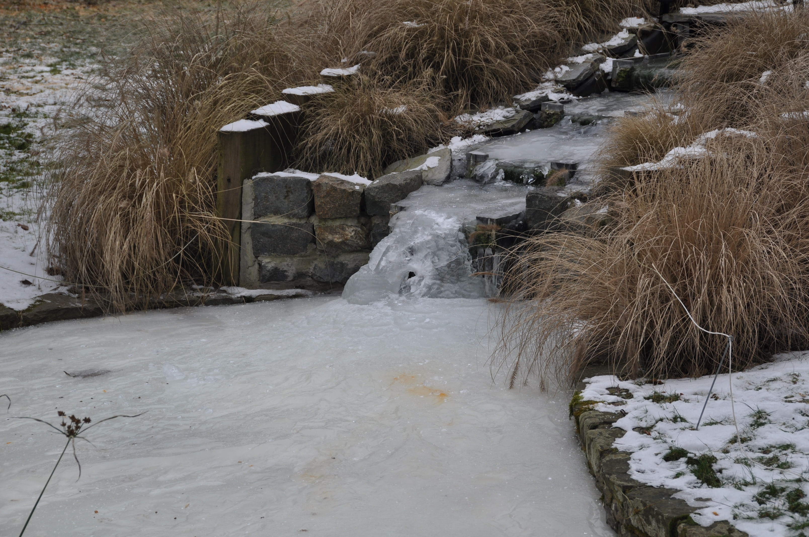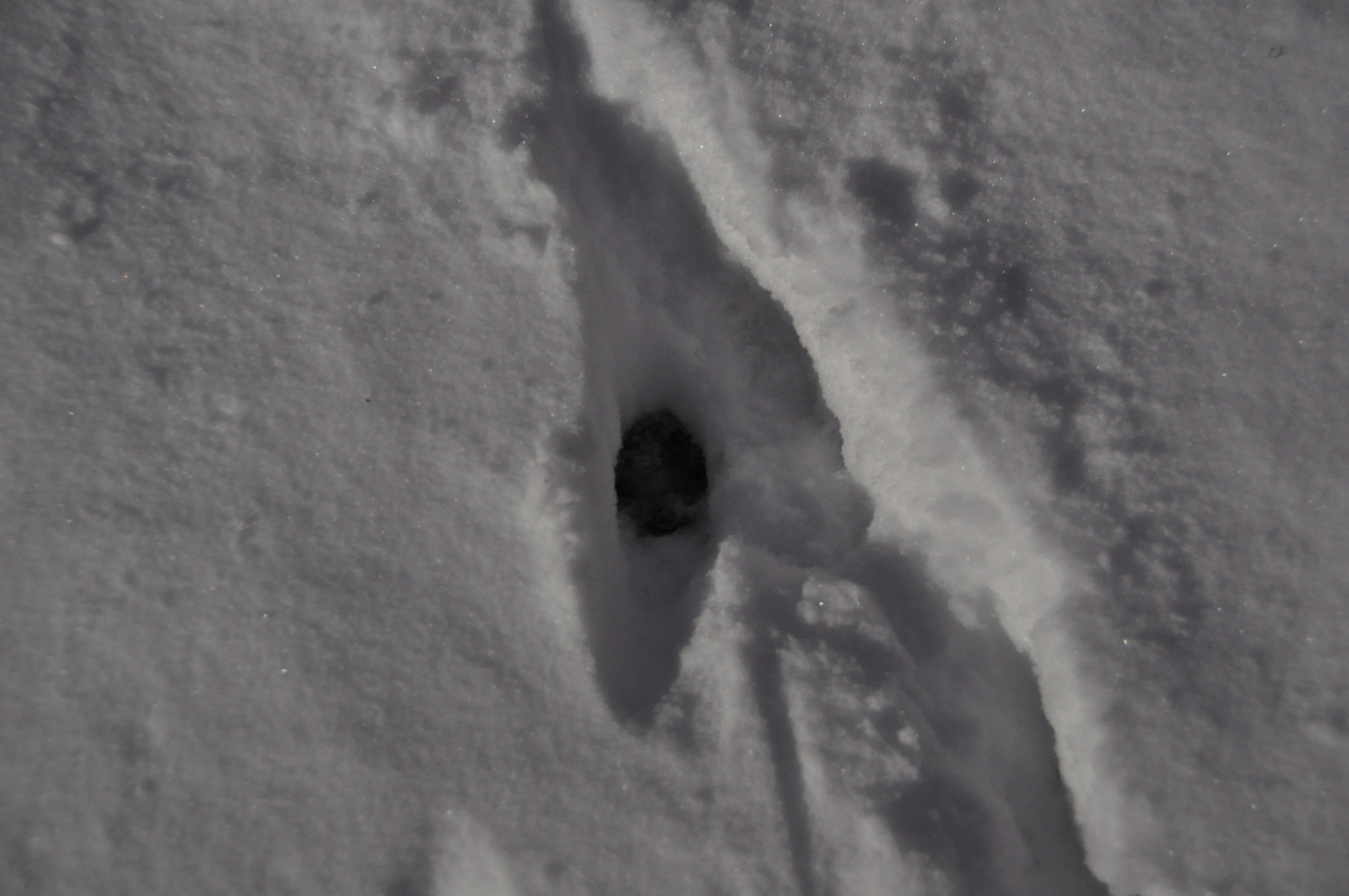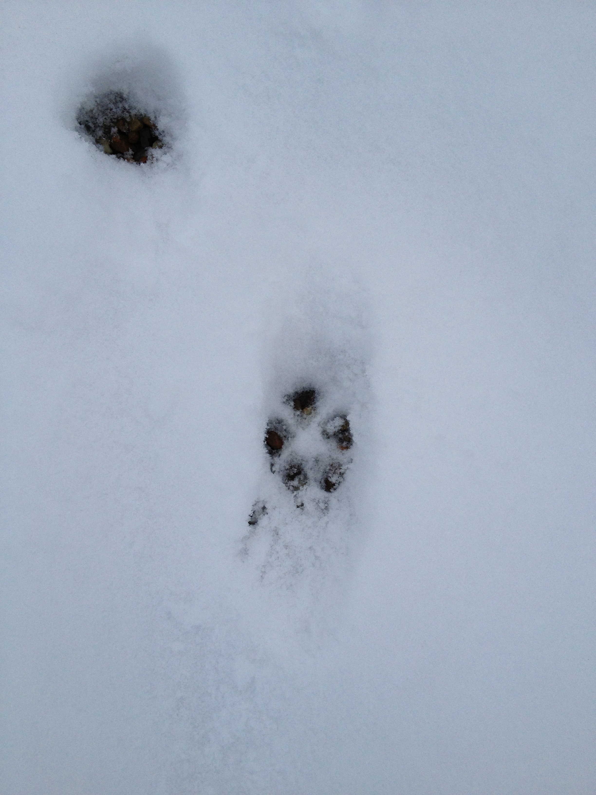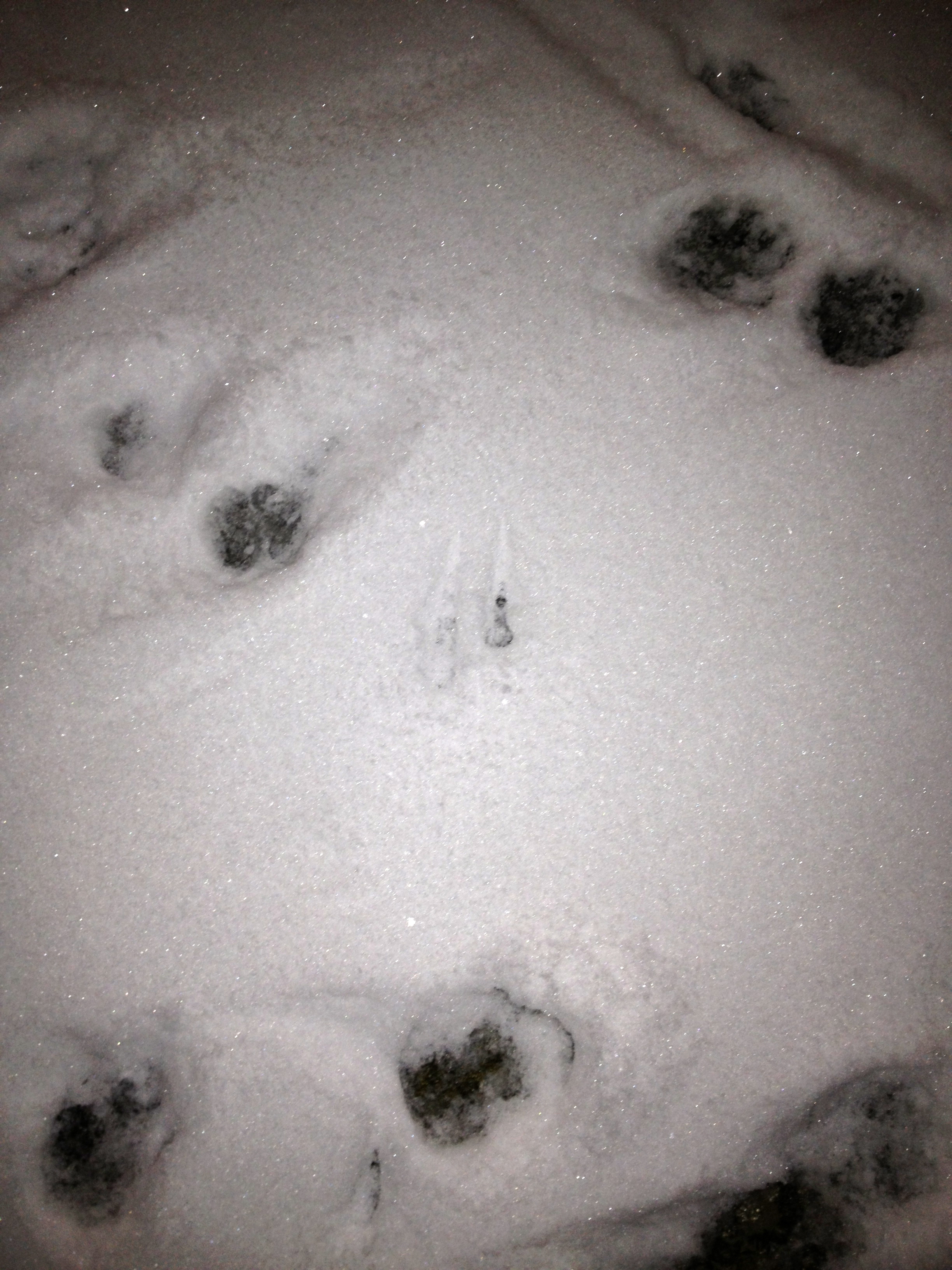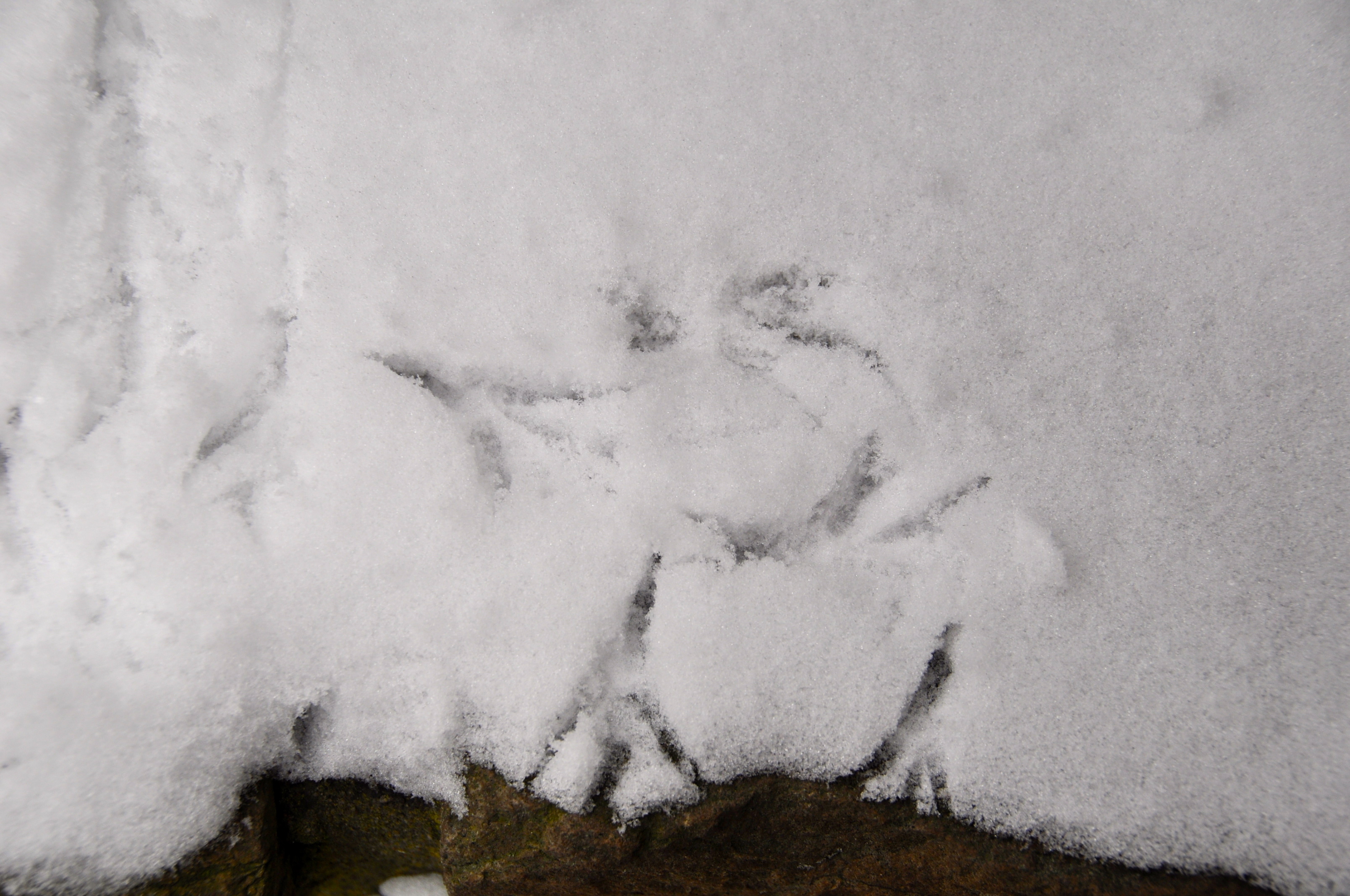 Il y a des traces de renard, de poule d’eau, de rouge-gorge, de chats, de chiens, de héron, … L’un sortant d’une haie, l’autre arrivant sur le marais gelé, … Que de choses se passent ici la nuit !