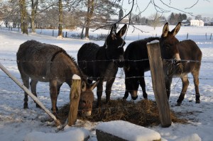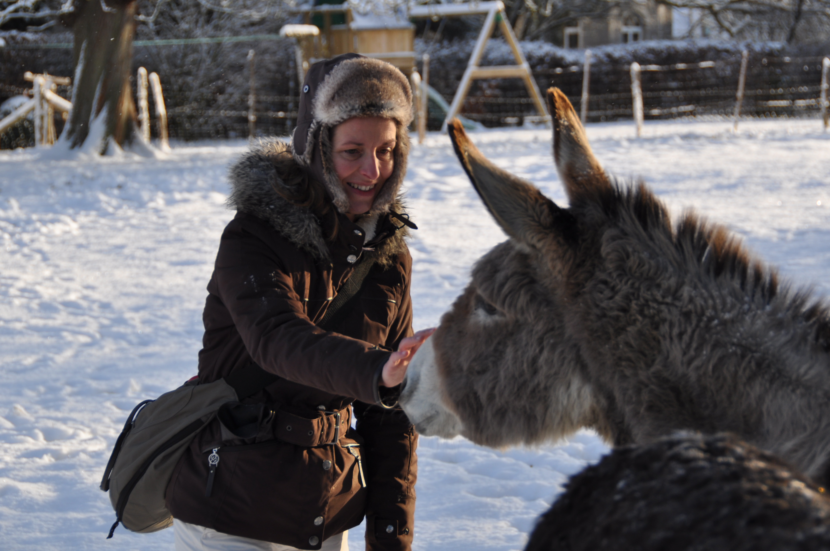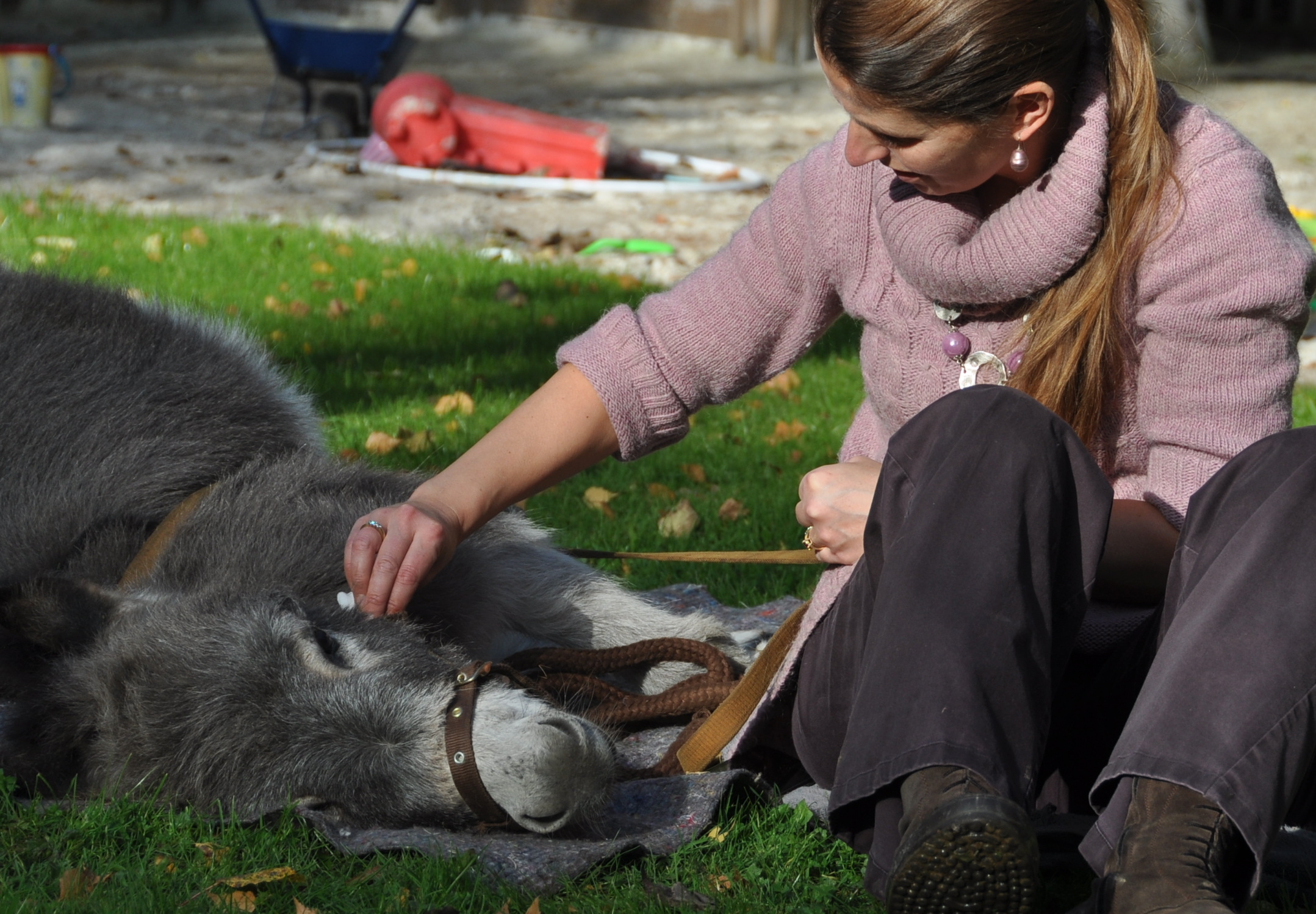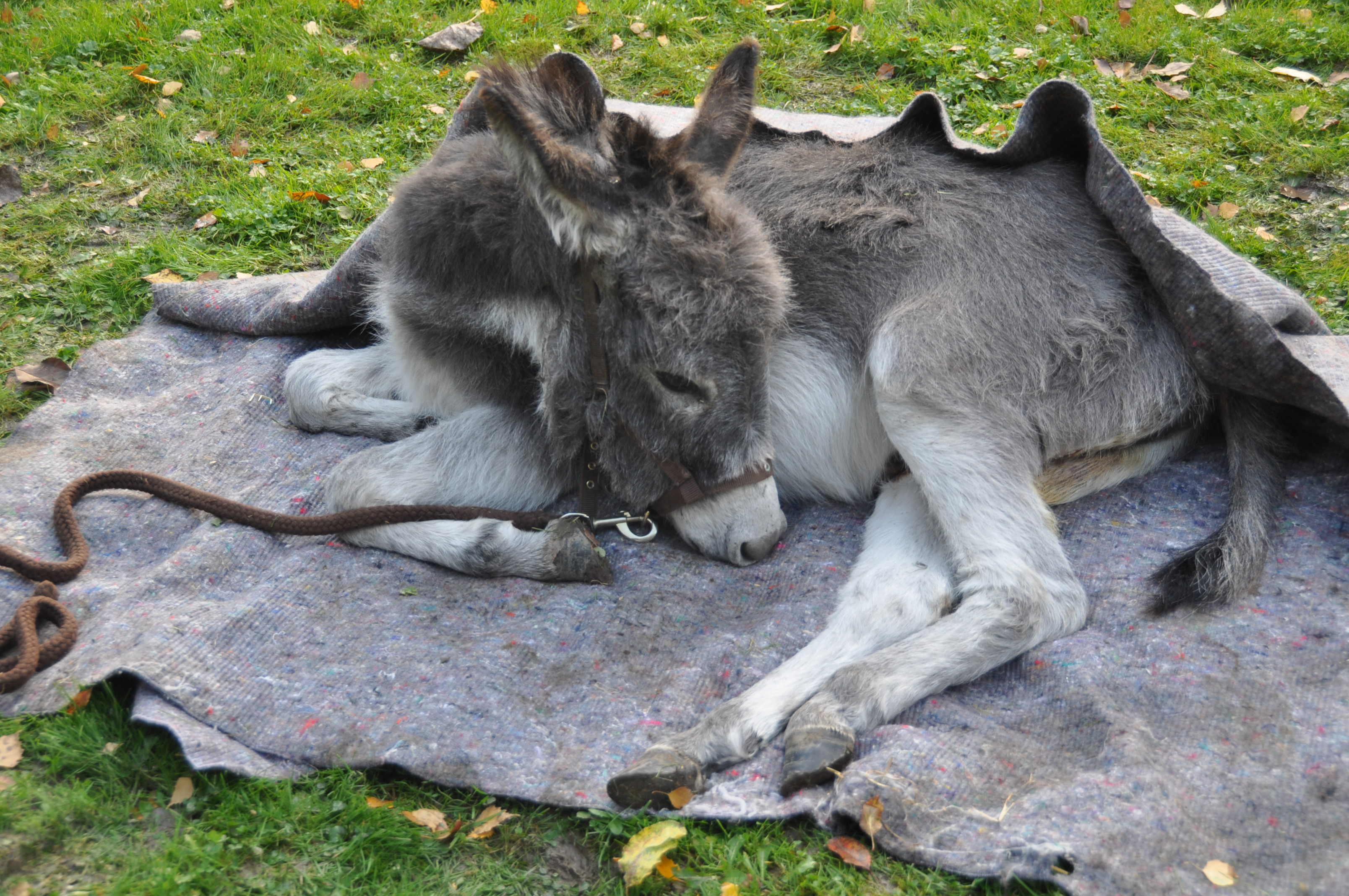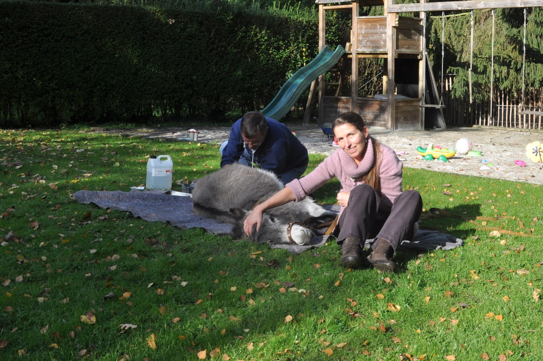 Toutes les conditions étaient au top aujourd’hui: un beau soleil, un bon véto expérimenté en ânes et chevaux, Léon en bonne forme, et du temps libre pour le choyer.