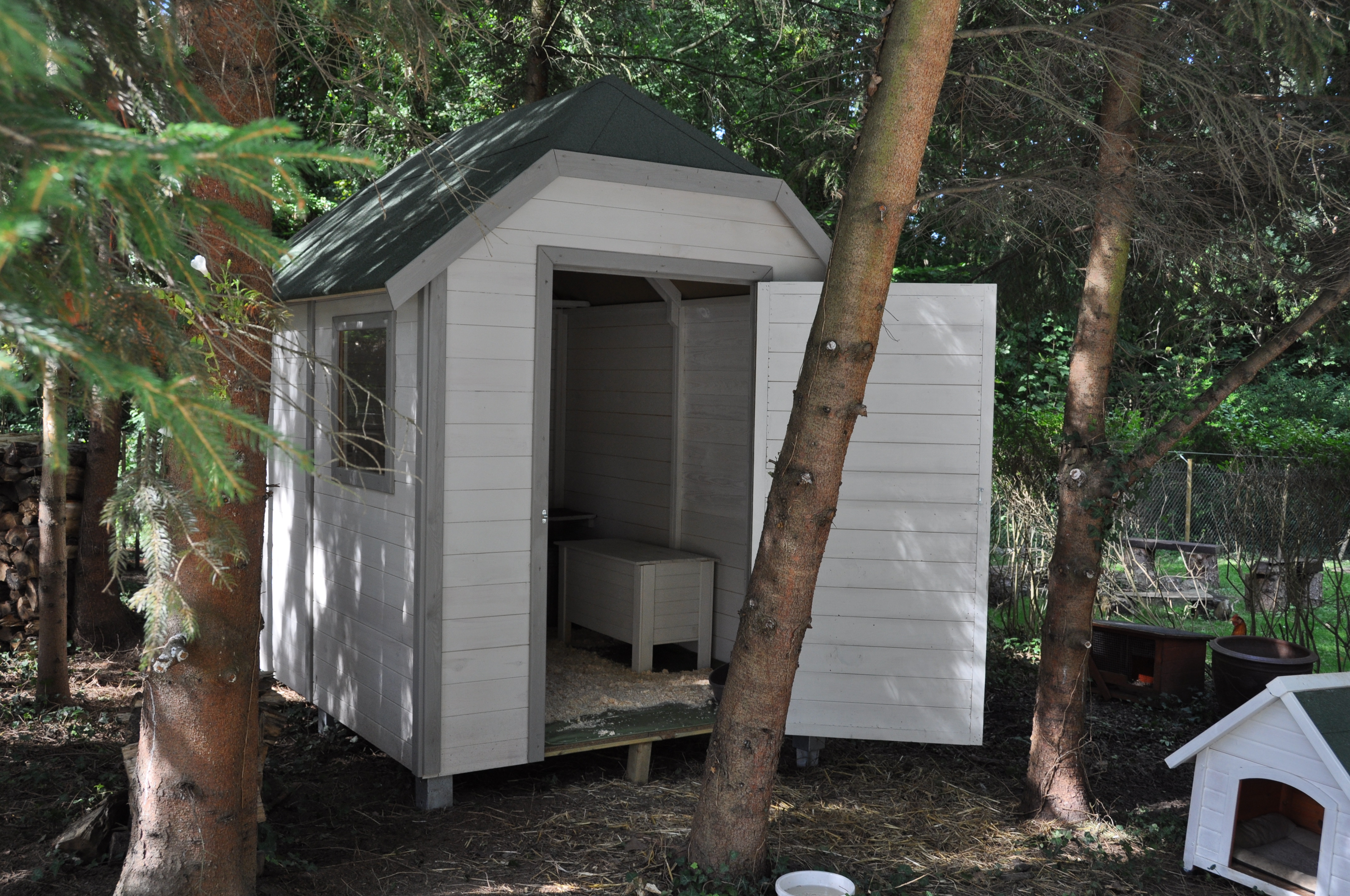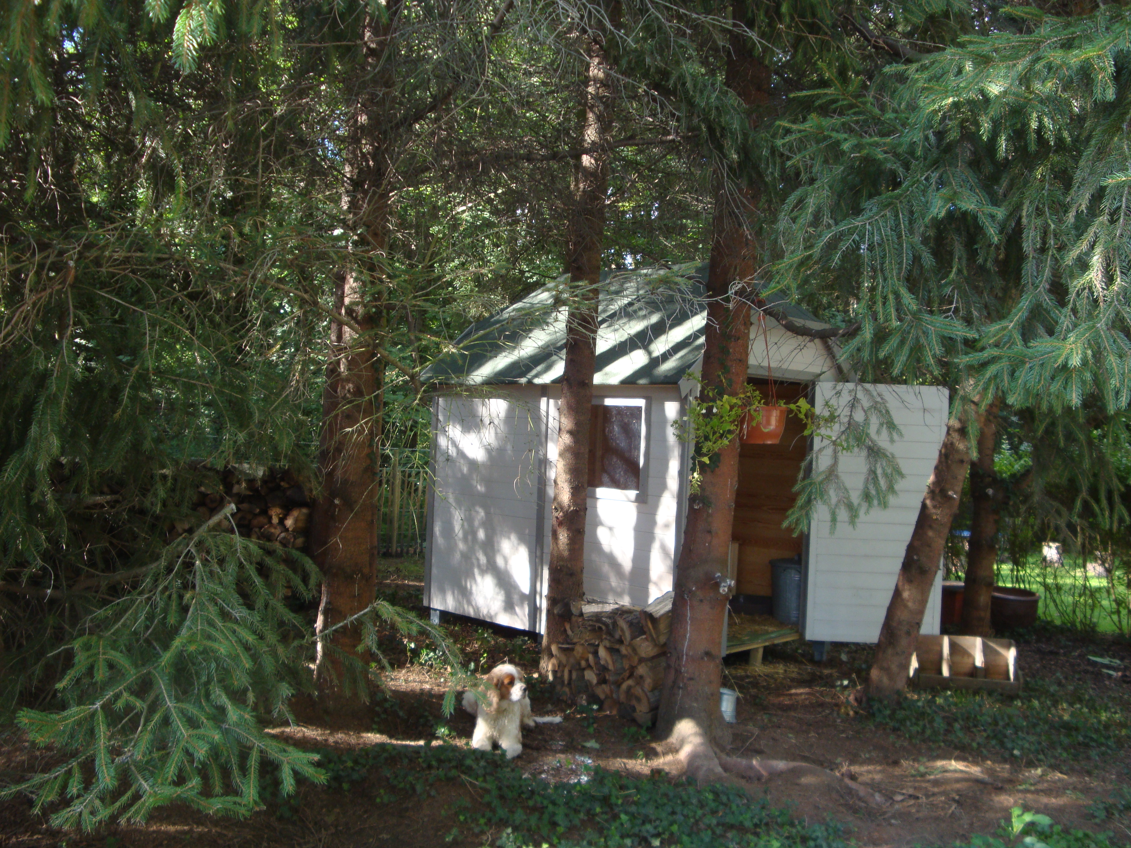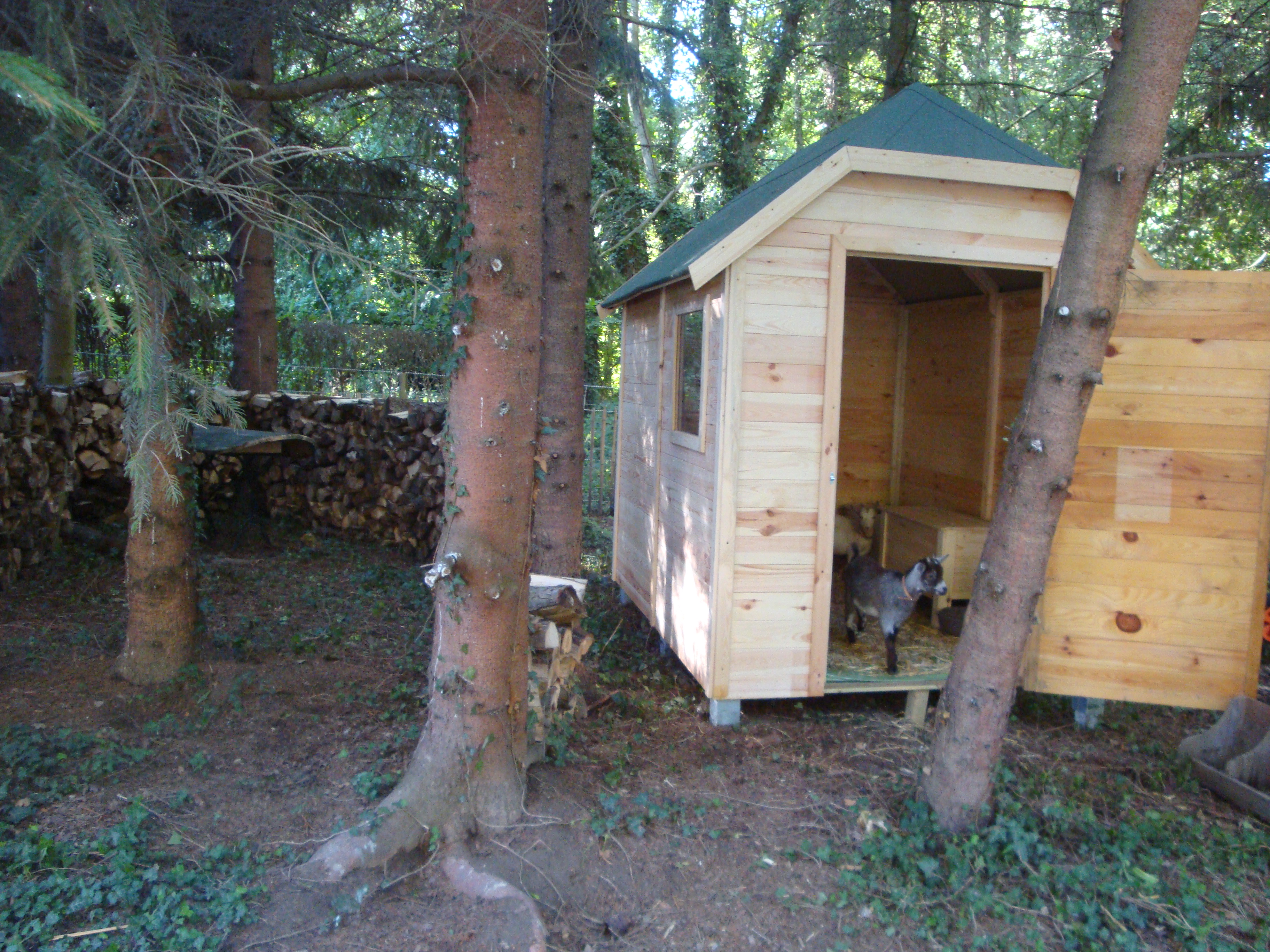 Un magnifique ratelier à foin « home made » (tout bois de récup’) se trouve dans la cabane pour les petits « creux » de la nuit …