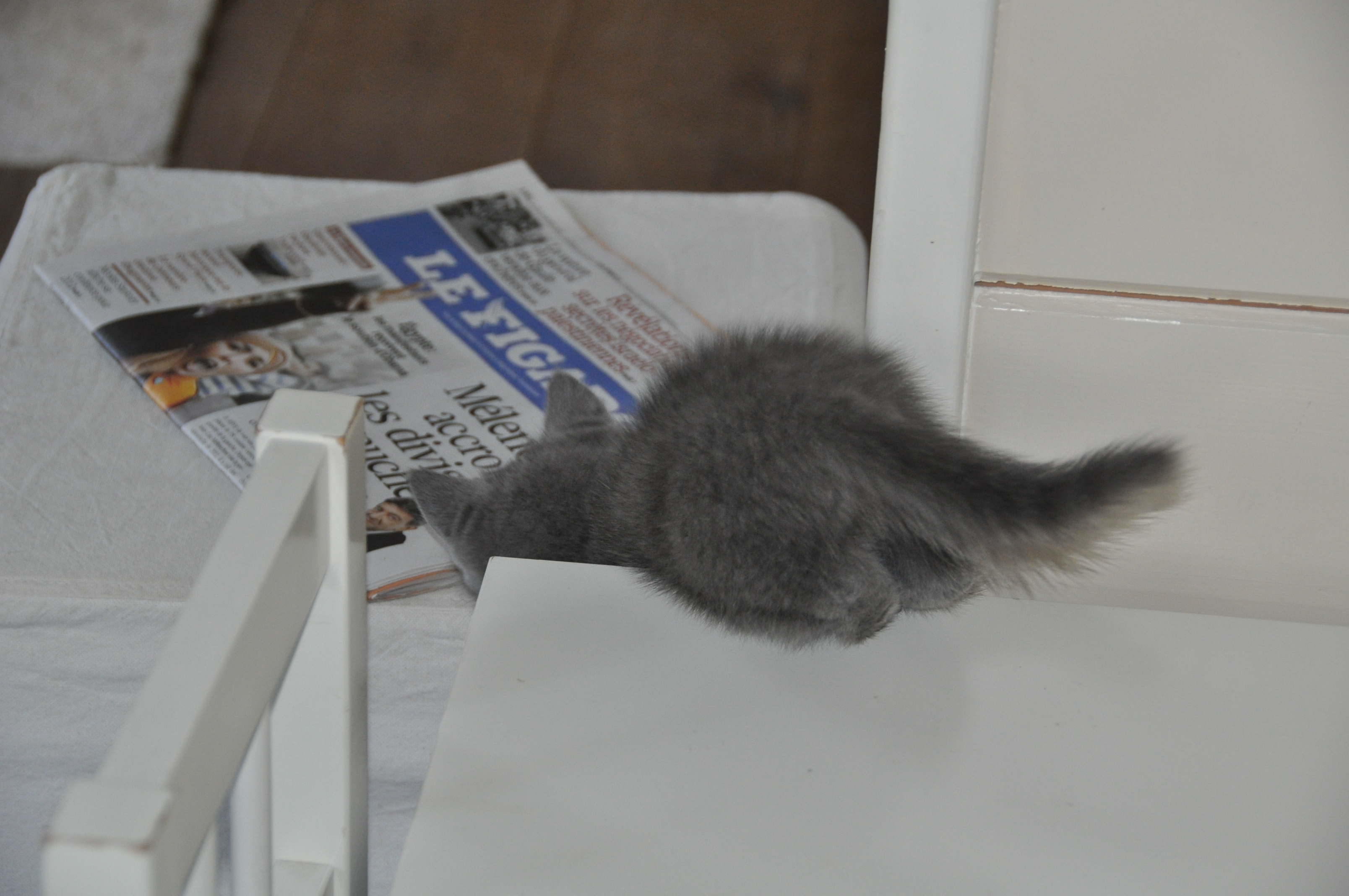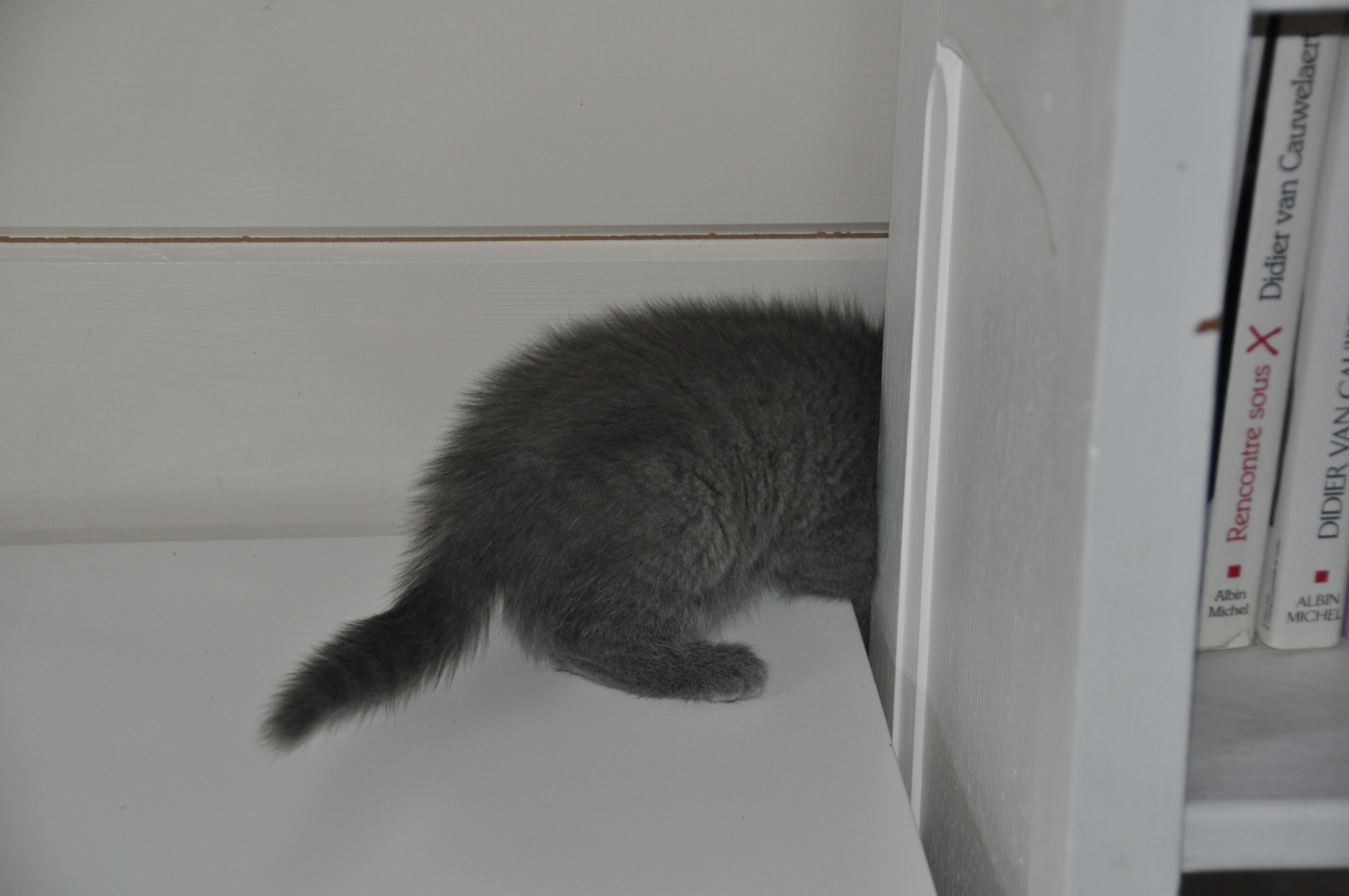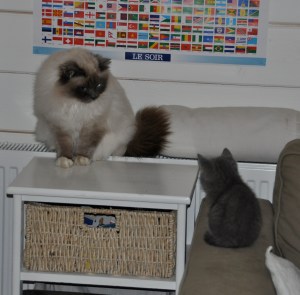 Avec Youri, c’est plus compliqué… il s’enfuit quand je veux l’approcher… Mais je crois si je le laisse tranquille, ça devra marcher ! Pourtant, je rêve de jouer avec sa queue de Birman, vous devriez voir le pelage 😉