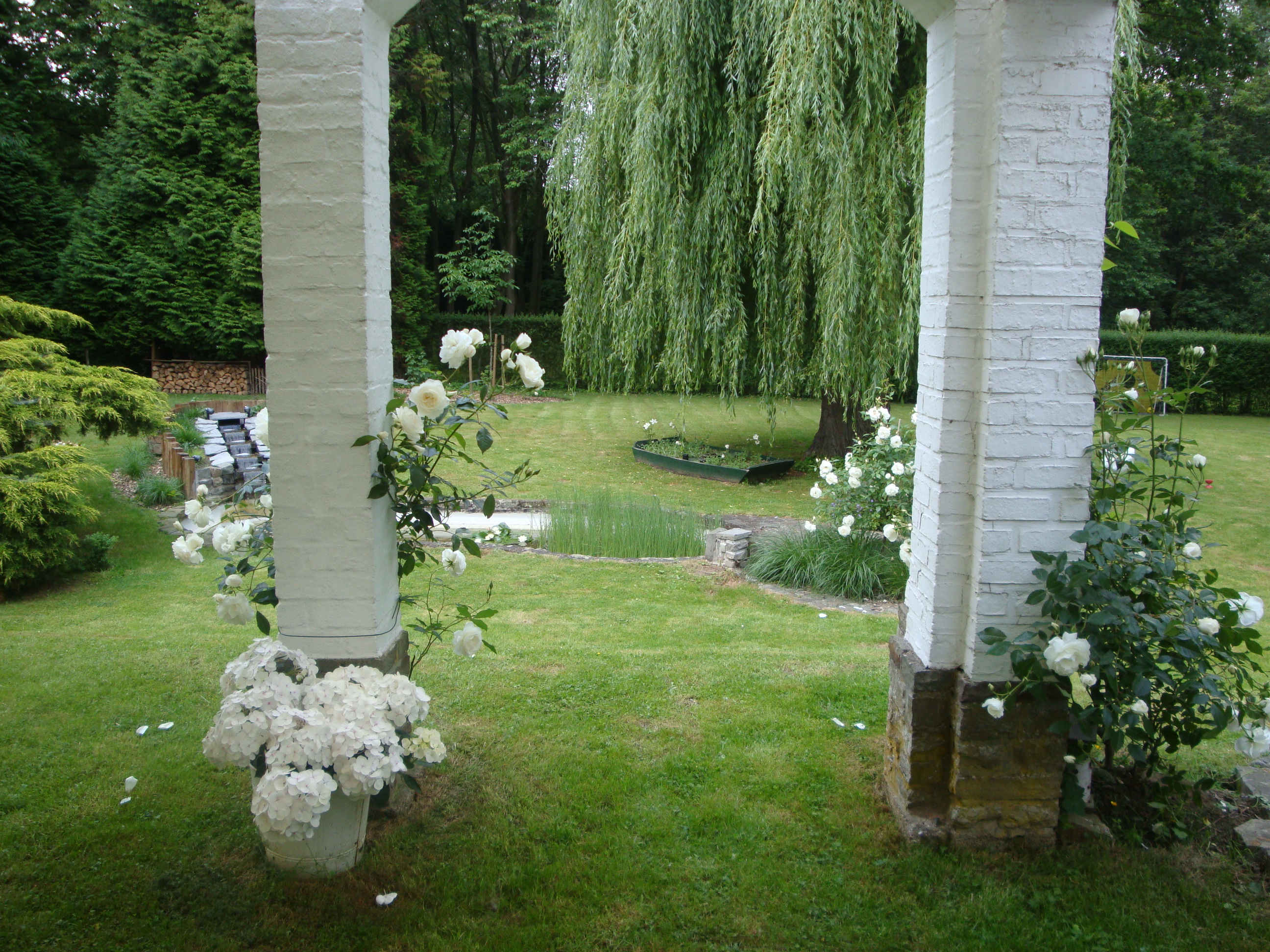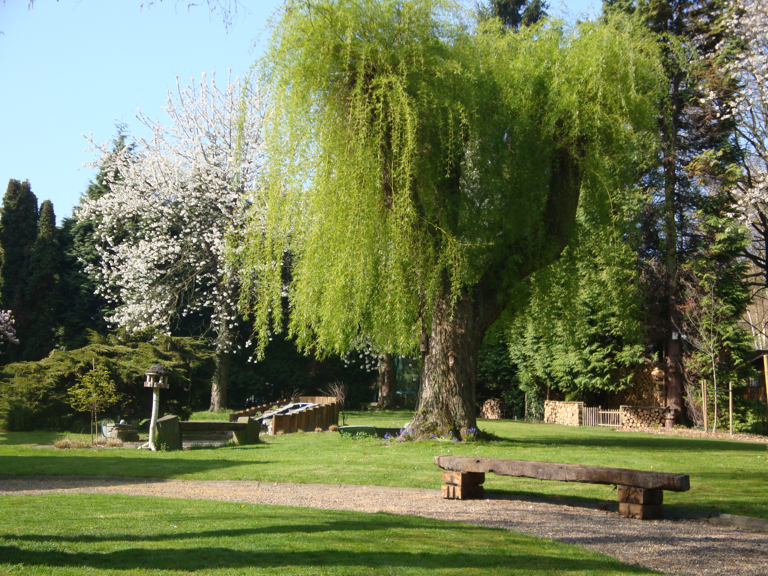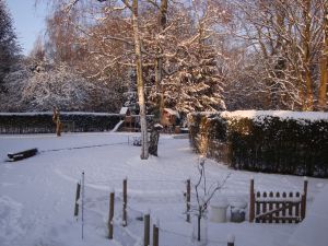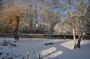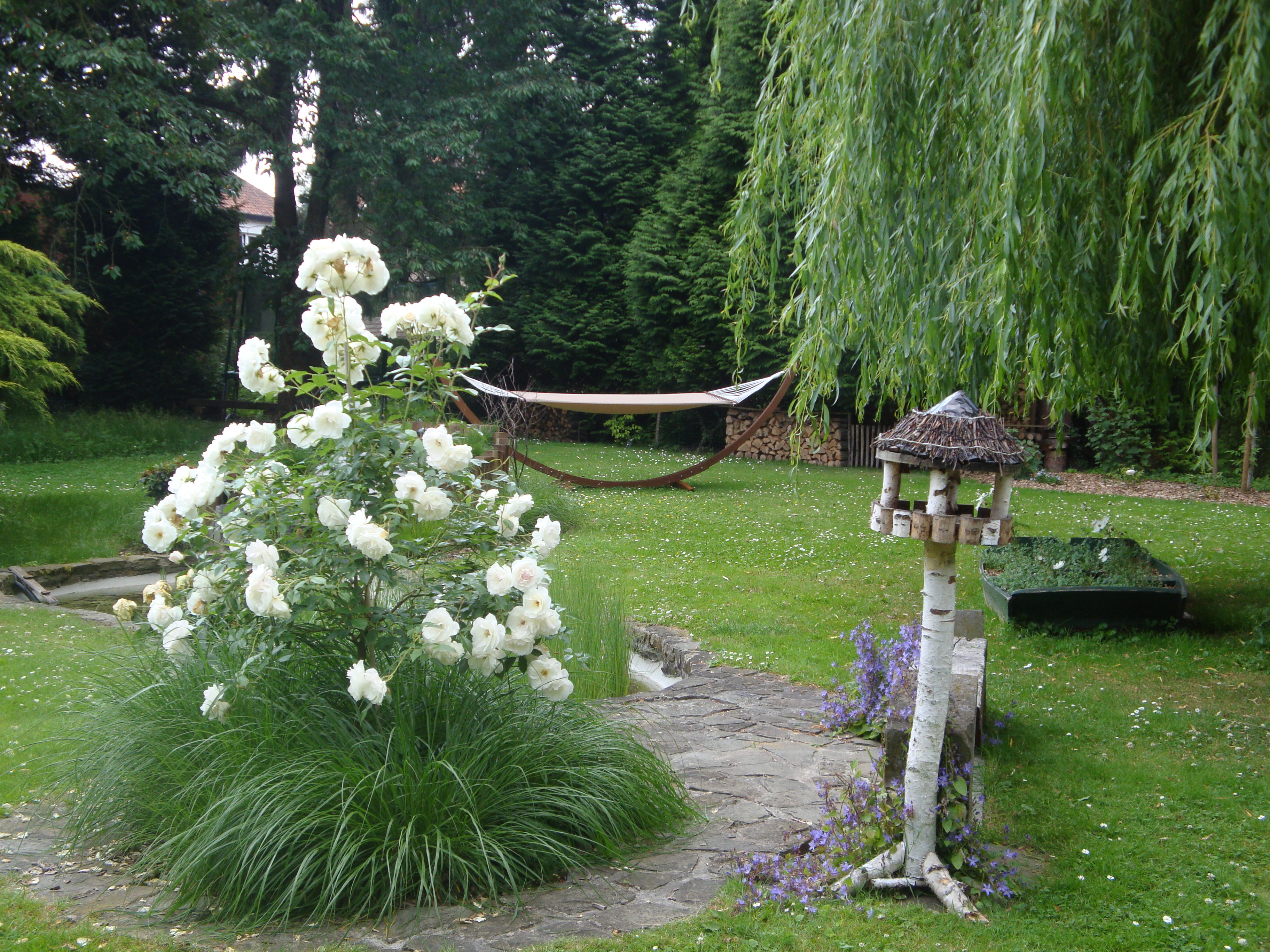 Le jardin abrite un enclos pour les lapins, un grand poulailler, un petit potager, plein de galeries à mulots et musaraignes, des nichoirs à chauve-souris, des nichoirs à oiseaux de toutes sortes, des nids de mésanges, des cabanes pour hérissons, des réserves d’écureuils, une mare à tritons et grenouilles, une petite prairie avec un âne et deux chèvres, deux chiens qui font fuir le renard, deux chats qui éloignent les taupes et les souris,… Aux Mésanges, vous trouvez l’harmonie entre les animaux et la famille. Tout le monde se respecte, et chacun trouve sa place. C’est également le bonheur de jardiner, créer des parterres, tailler, donner des formes, récolter des fruits, faire des gelées de pomme, … Tout cela aussi grâce à la constance du jardinier !