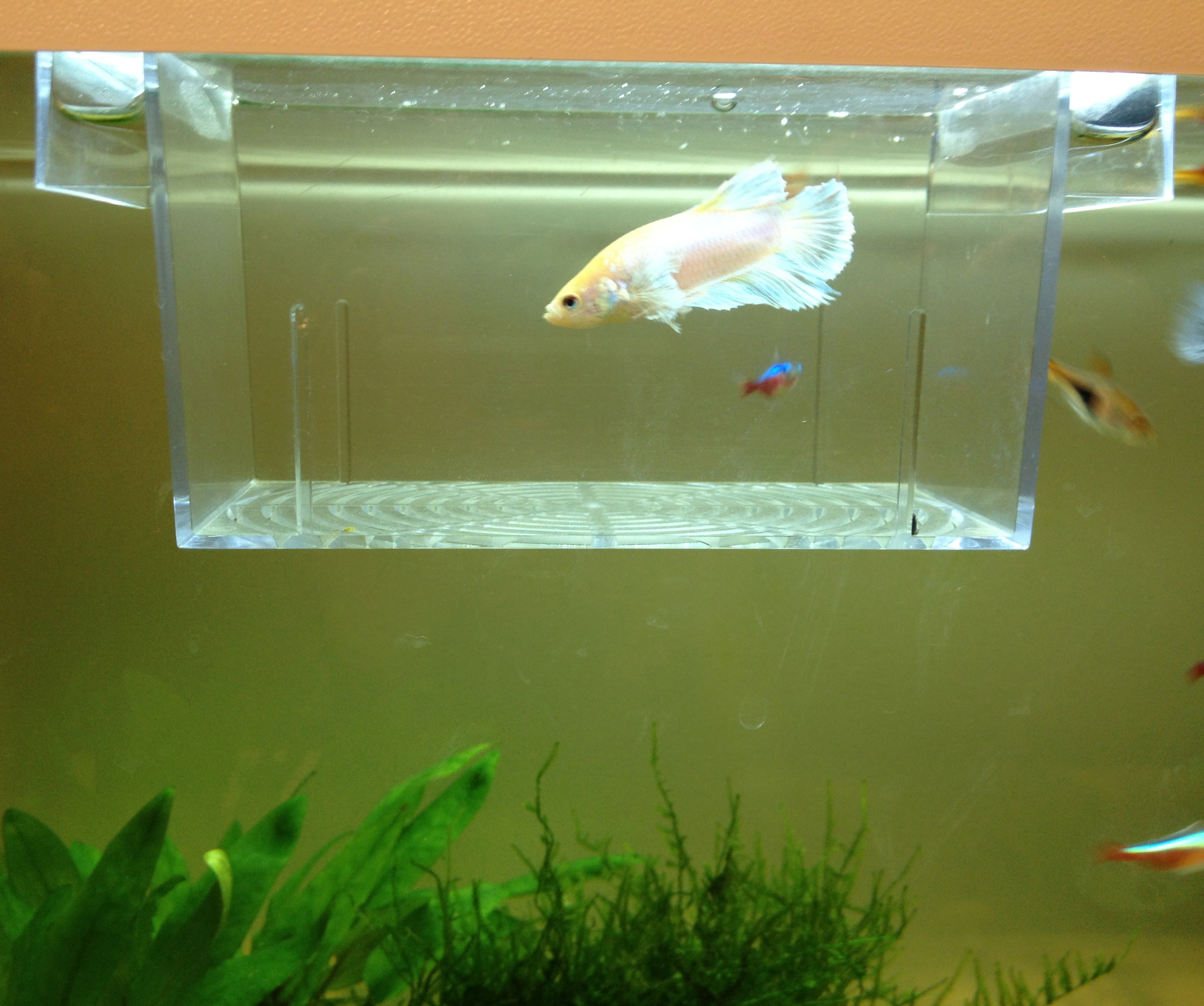 Ce matin, on a retrouvé « le combattant », le ventre bien plein, dans le bassin d’élevage …